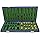 Un tablero de ajedrez hecho de madera y contrachapado, horneado, teñido y barnizado de color azul. El interior está forrado con una bandeja inserta verde. Las coordenadas algebraicas de números y letras adornan los bordes; mide 16 x 16 x 1 pulgadas (40.7 x 40.7 x 2.5 centímetros); cada cuadrado mide 2 x 2 pulgadas (5 x 5 centímetros);