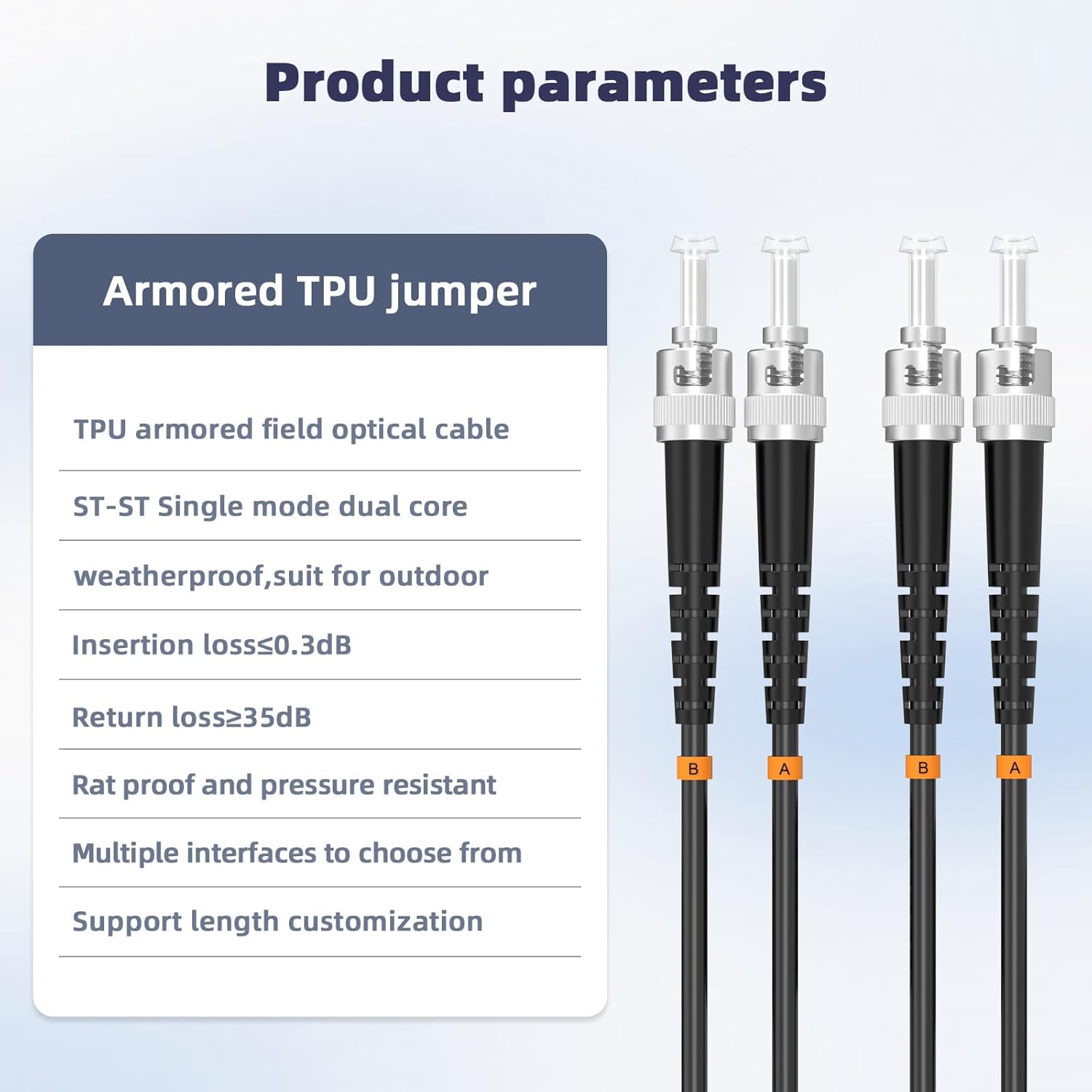 400M ST to ST Outdoor Armored Duplex 9/125 SM Fiber Optic Cable Jumper Optical Patch Cord Singlemode 400Meters 1312ft ST-ST