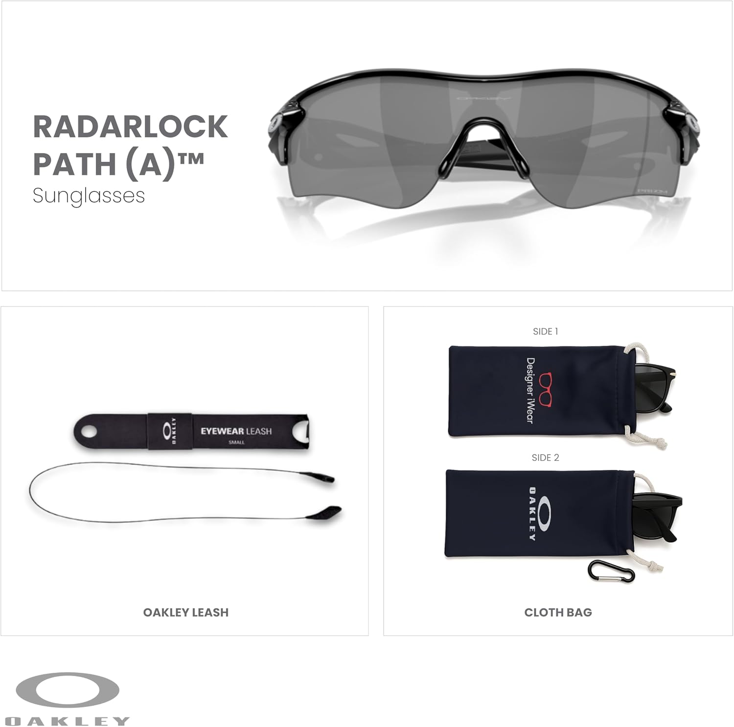 OAKLEY Radar Lock Path Asian Fit OO9206 Low Bridge Rectangle Sunglasses for Men+Bundle Accessory Leash Kit,Microfiber Pouch