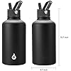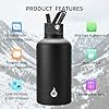 BJPKPK Half Gallon Insulated Water Bottles with Straw Lid, 64oz Large Water Jug, Stainless Steel Bottles with 3 Lids and Paracord Handle, Thermo for Hot & Cold Liquid, Black