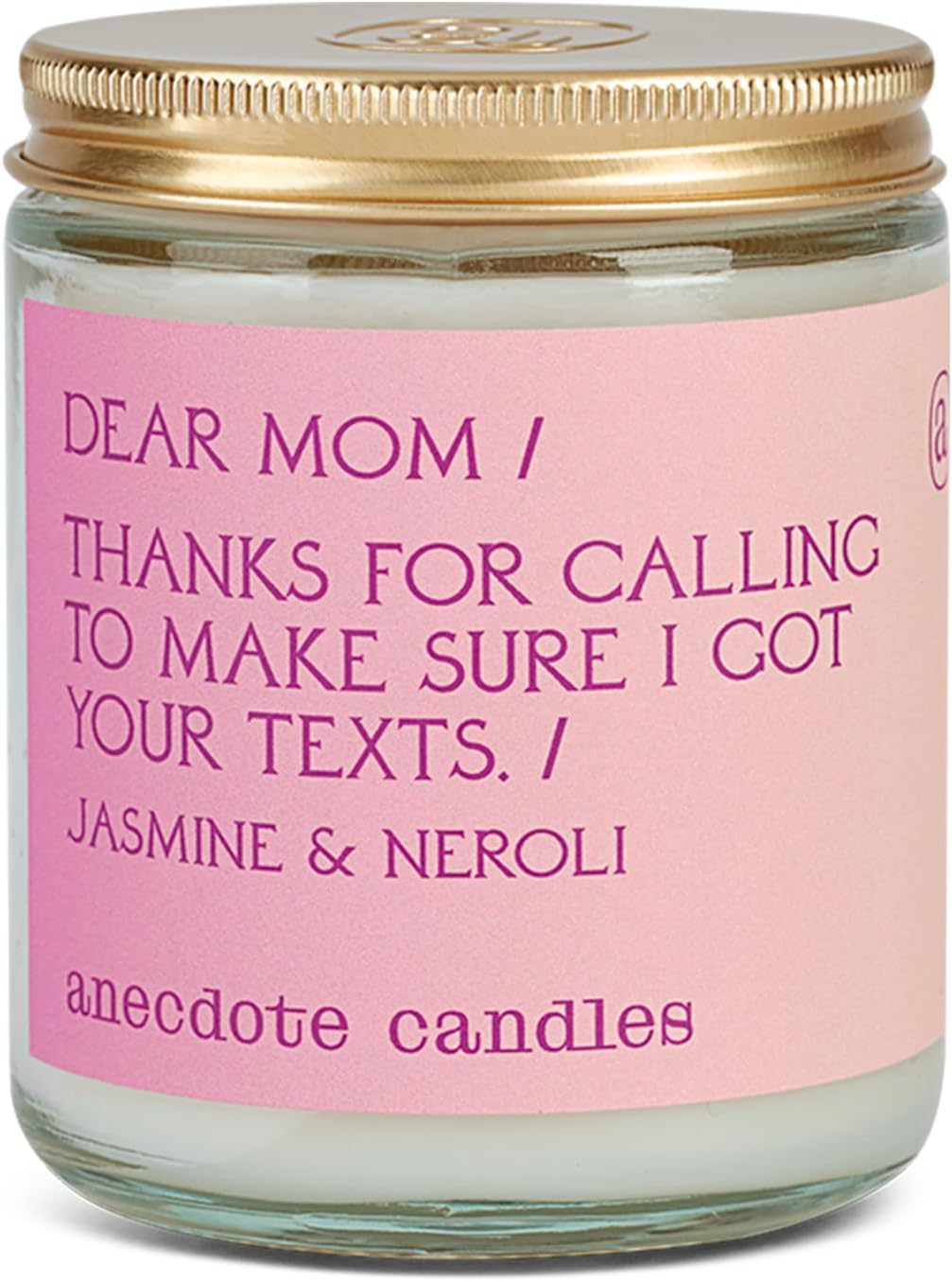 Anecdote Candles ‘Dear Mom’ Coconut Soy Wax Candle Jar | Premium Hand Poured & Long Burning | Jasmine & Neroli Scent | Phthalate-Free | Gifts for Mom - 7.8 Oz