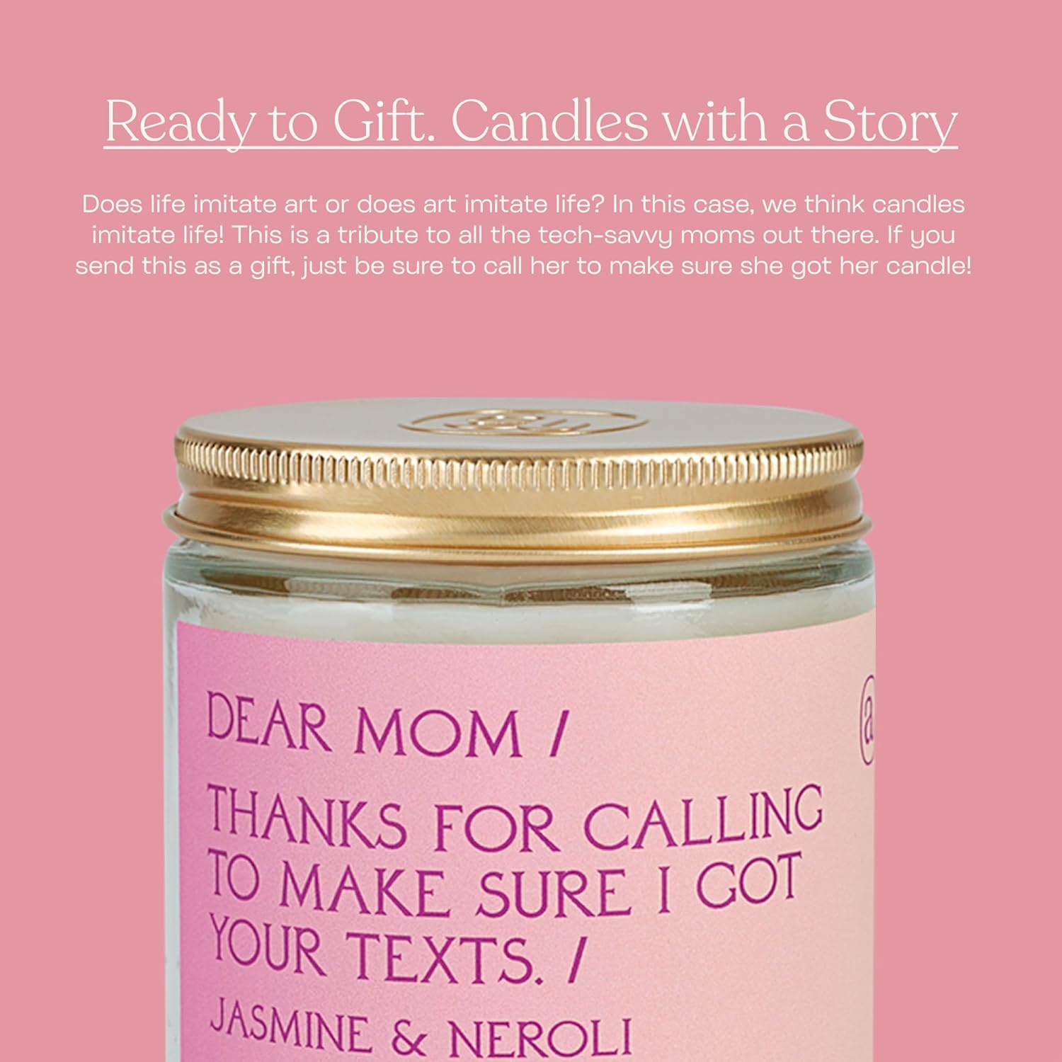 IRREVERENT PHRASES & QUALITY INGREDIENTS: Crafted with care and precision, each Dear Mom Jasmine Scented candles sparks conversation and shares stories. Made from premium ingredients, including a custom coconut-soy wax blend, our jasmine glass candles ensure a clean burn and powerful scent throw. Developed in collaboration with master perfumers, our fragrances in the neroli scented candles capture the essence of comfort and familiarity, inviting you to linger in moments of relaxation and indulgence.