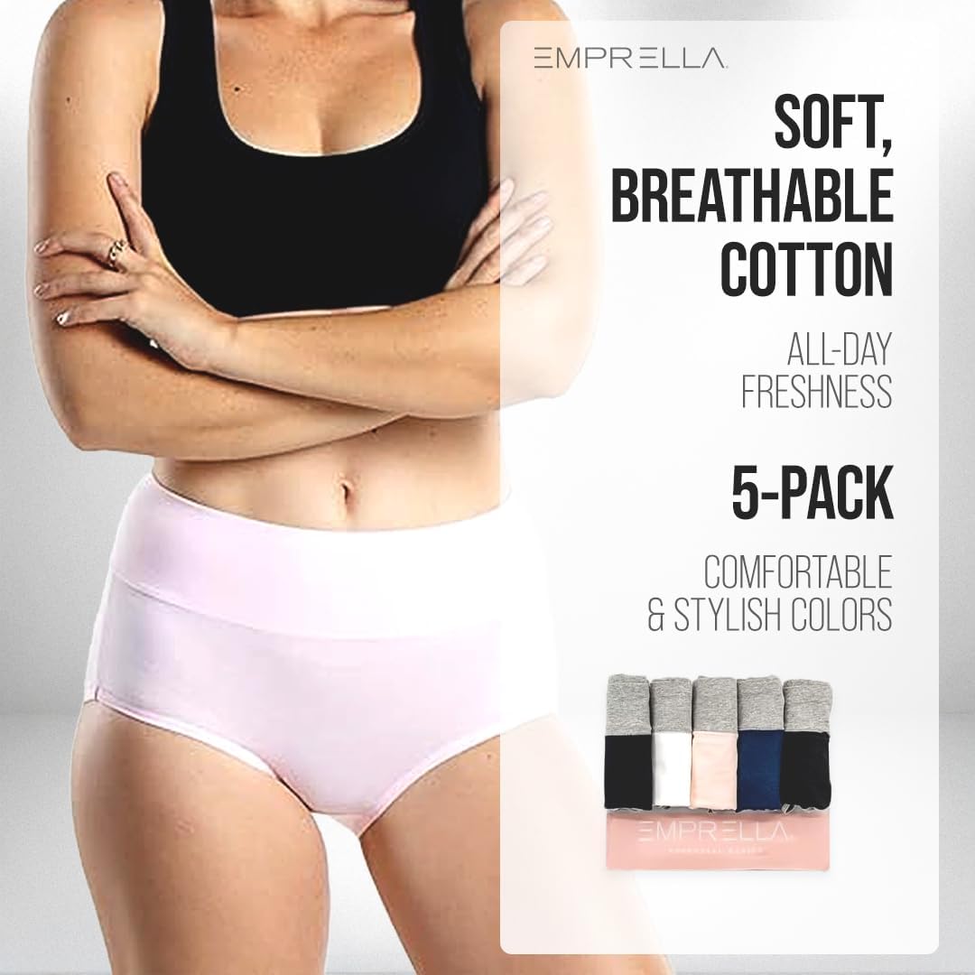 Emprella High Waisted Underwear for Women-Brief Panties-Underwear Plus Size, 5-Pack