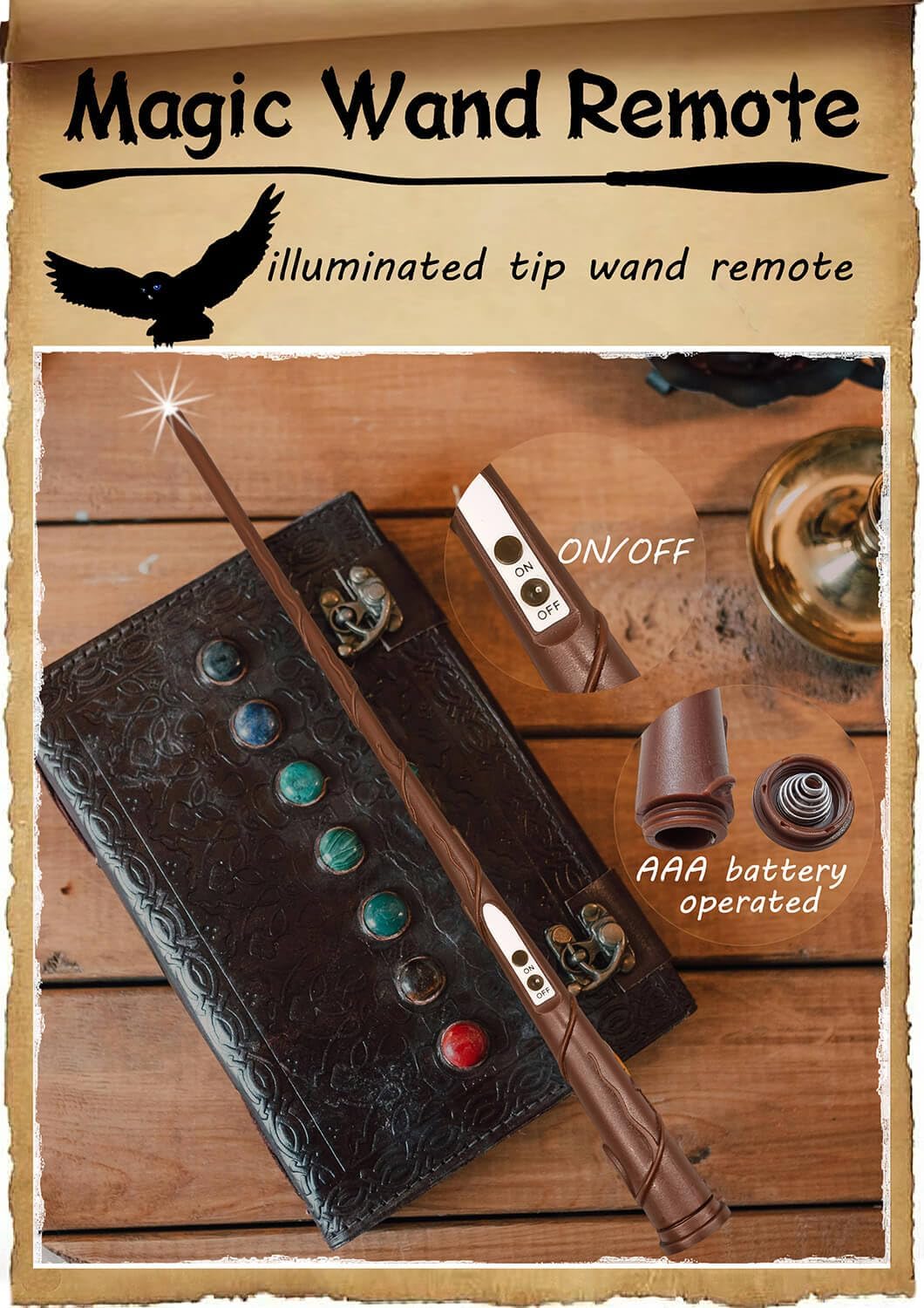 Light-Up Magic Wand Remote Control: Magic wand can make white lights up when turns on & off, and can switches all candles on and off simultaneously. Requires 1 x AAA battery (not included).
