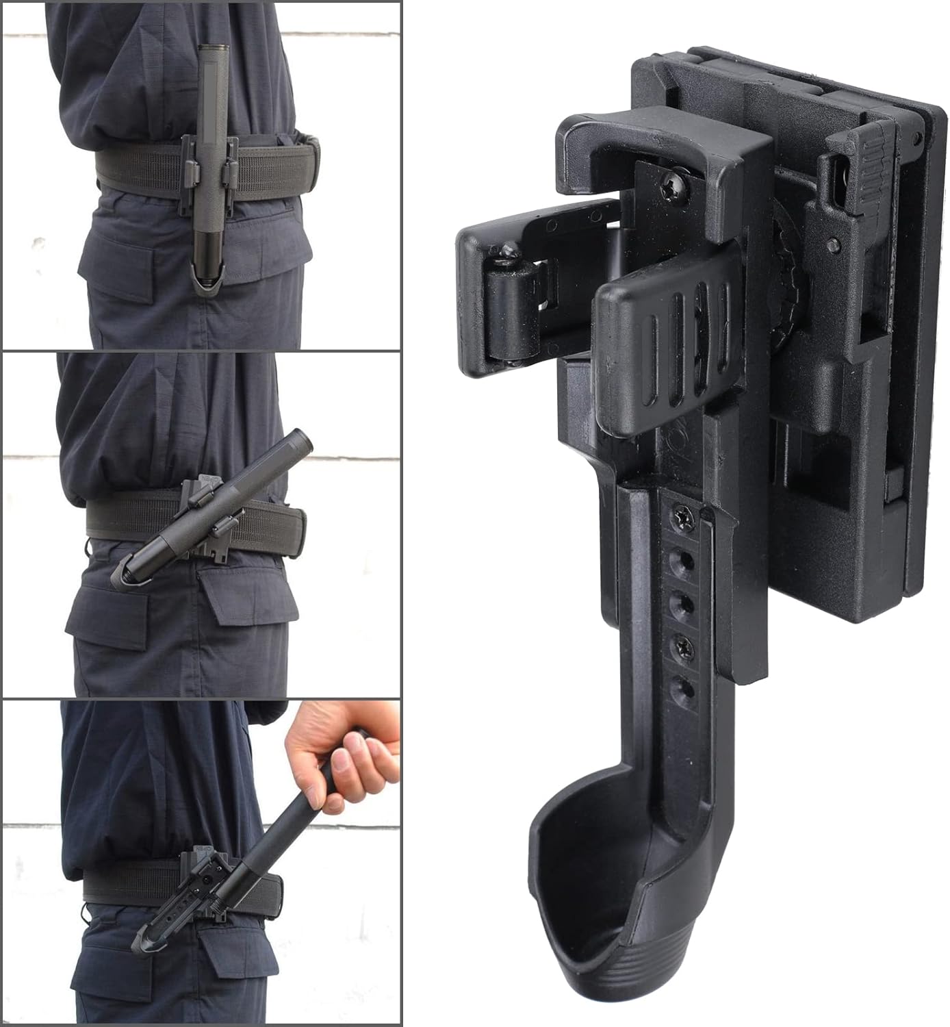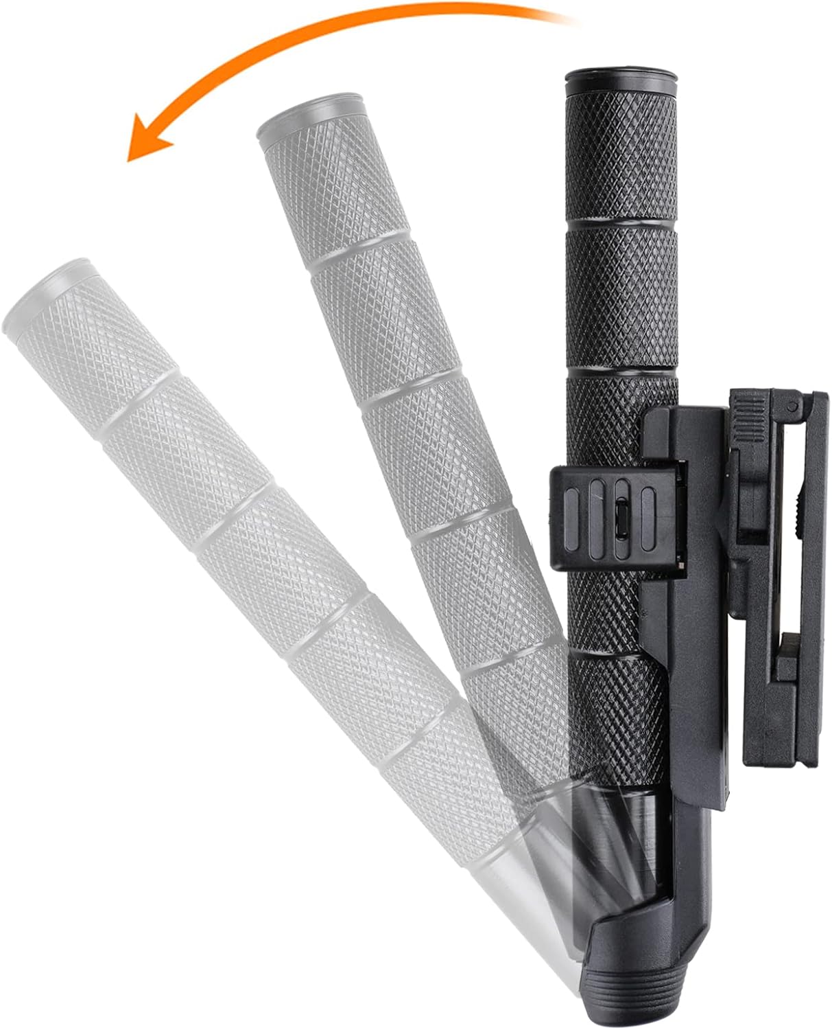 360 Degree Rotation: Baton Holder with the swivel mechanism can let it be rotated for 360 degrees with 16 positions for a comfortable carry, let it be quick to draw upwards or side-draw as fast as 1.5 sec to fight and defend.
