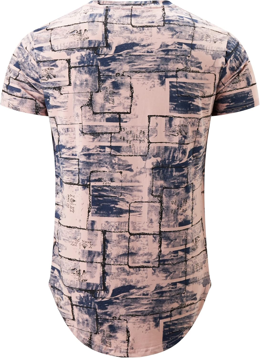 YININF Mens Hipster Hip-Hop Tees Stylish Longline Urban Streetwear Latest NYC Fashion T-Shirts(K304 Pink XXL)