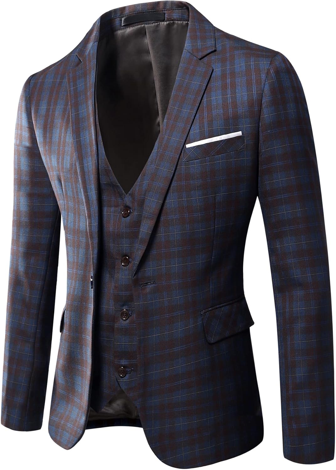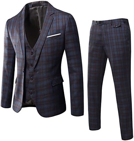 WULFUL Men’s Slim Fit Suit One Button 3-Piece Blazer Dress Business Wedding Party Jacket Vest & Pant