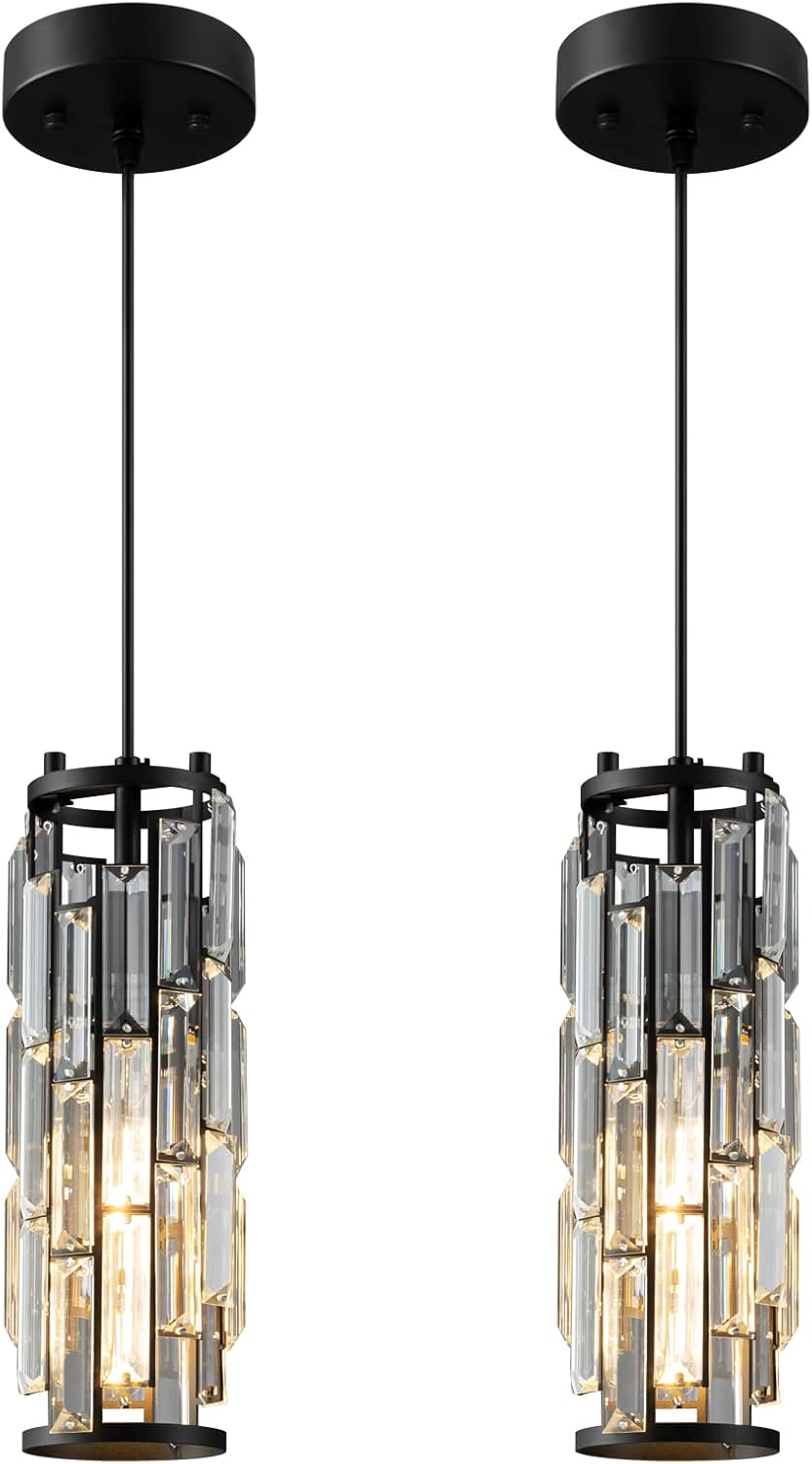 Pendant Lights Modern Black Pendant Light Mini Crystal Chandelier Pendant Lighting for Kitchen Island Dinning Room Bedroom Kitchen Sink Lighting (Black 2-Pack)