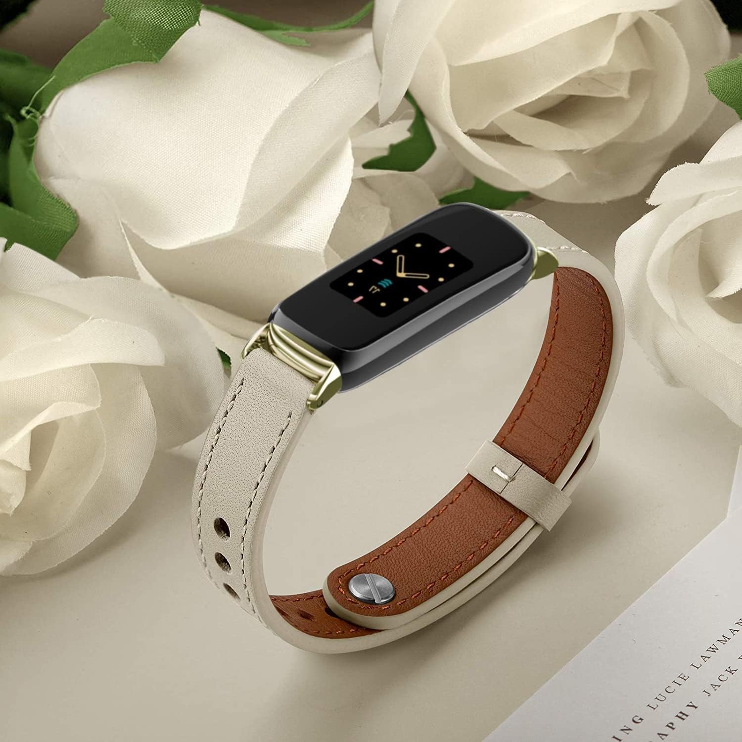 Elegant Slim Leather Bands Compatible for Fitbit Luxe Watch Band, Strap Wristband, Soft Bracelet Replacement for Fitbit Luxe Fitness and Wellness Tracker Women