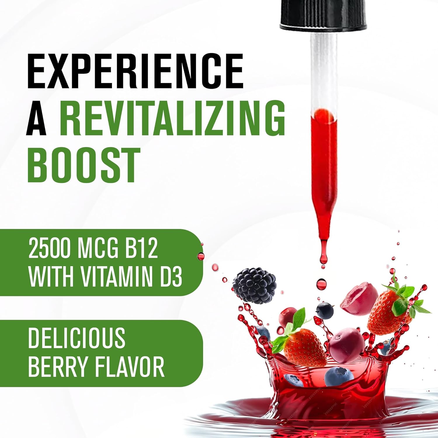 Limpio, Natural y Altamente Efectivo: Hecho con metilcobalamina B12, la forma más biodisponible, más vitamina D3 para mayor apoyo. Este suplemento de vitaminas B12 líquidas es vegano, libre de rellenos y diseñado para un metabolismo y vitalidad óptimos.