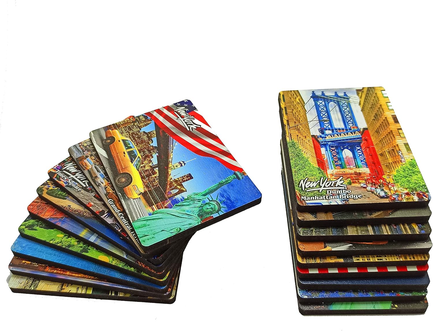 18 Pieces Pack New York City Rectancular Uv Printing Wooden Decorative Souvenir Fridge Magnets