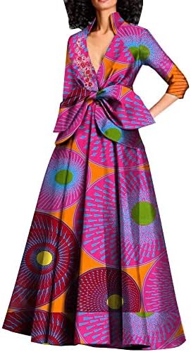 African Dresses for Women Long Deep V-Neck Traditional Ankara Kente Print Evening Beautiful Dress