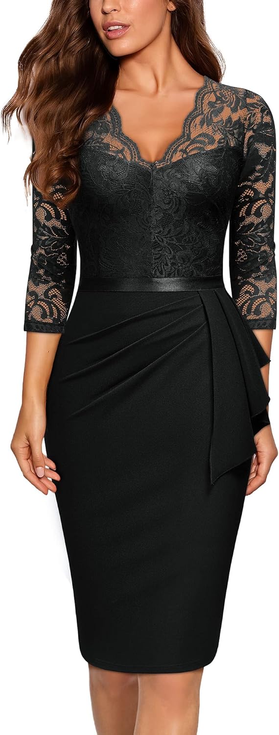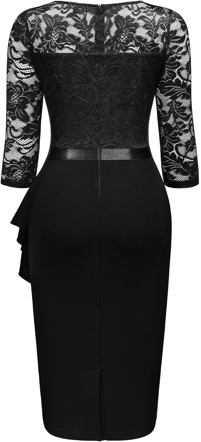 Miusol Women's Retro V Neck Floral Lace Ruffle Style Cocktail Party Dress