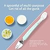 Head Baby Silicone Food Spoon: The design of the two ends of this spoon is very convenient, one end is a soft spoon for feeding the baby, and the other end is a mud scraping spoon, which is suitable for all kinds of baby food, fruit.