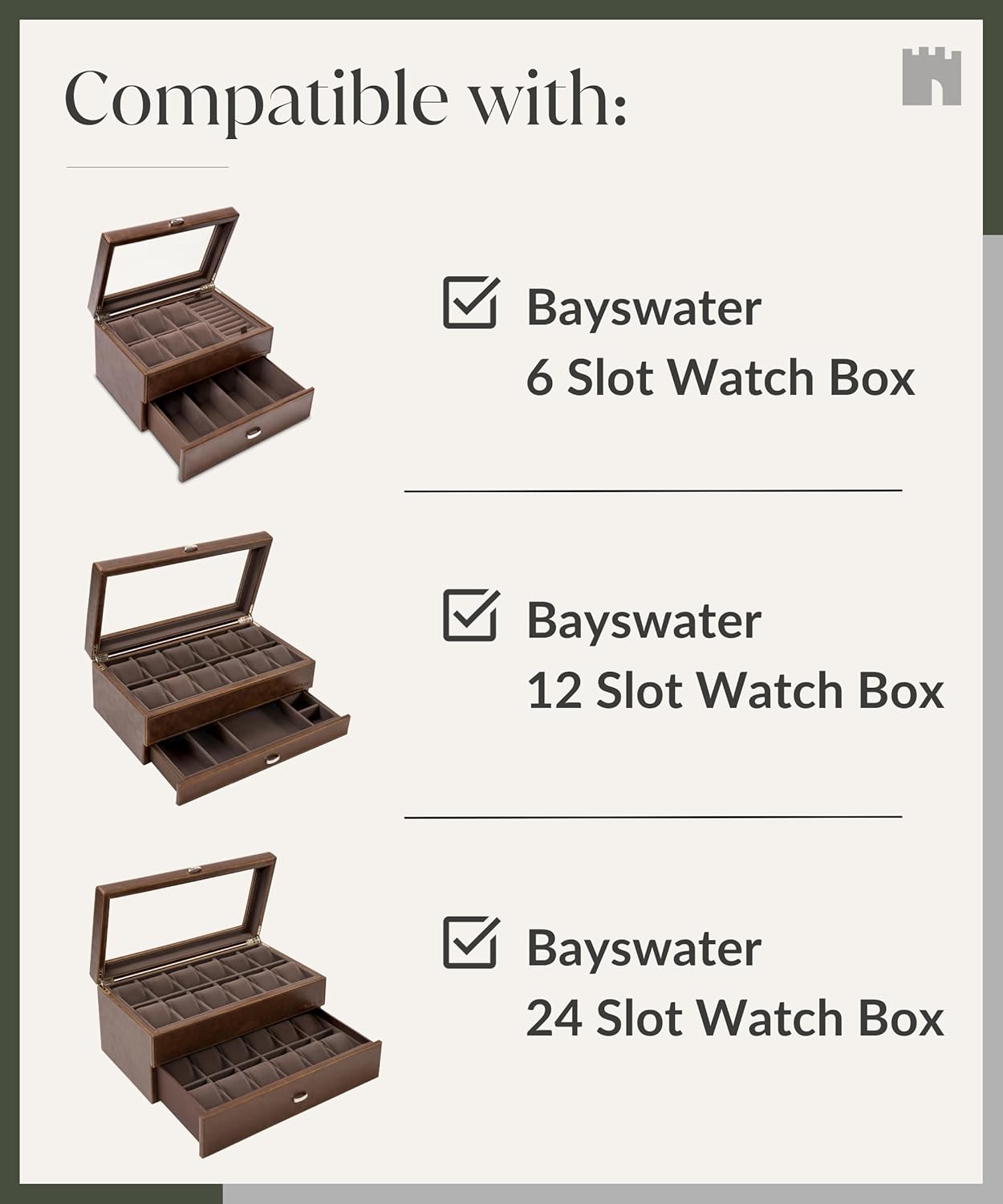 Compatible with our Bayswater 12 & 24 Slot Watch Boxes and 6 Watch Jewelry Box