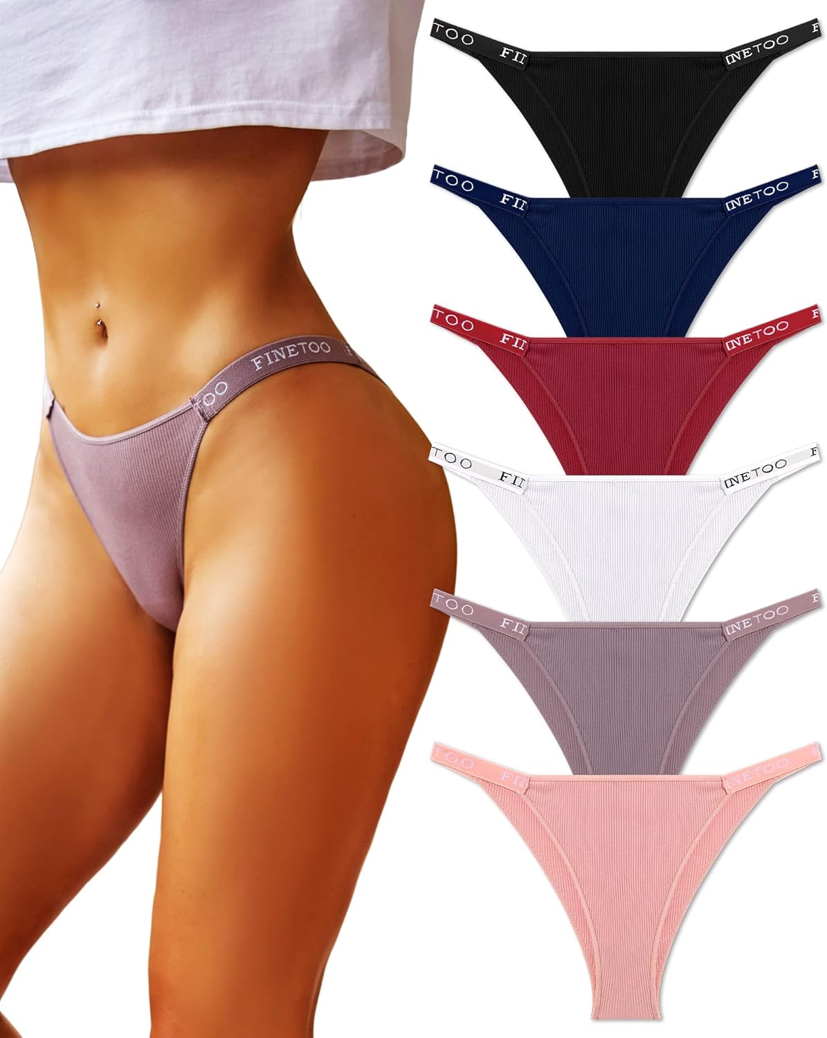 FINETOO Womens Underwear Cotton High Cut String Bikini Panties Low Rise Hipster Ladies Sexy Cheeky Underwear Pack