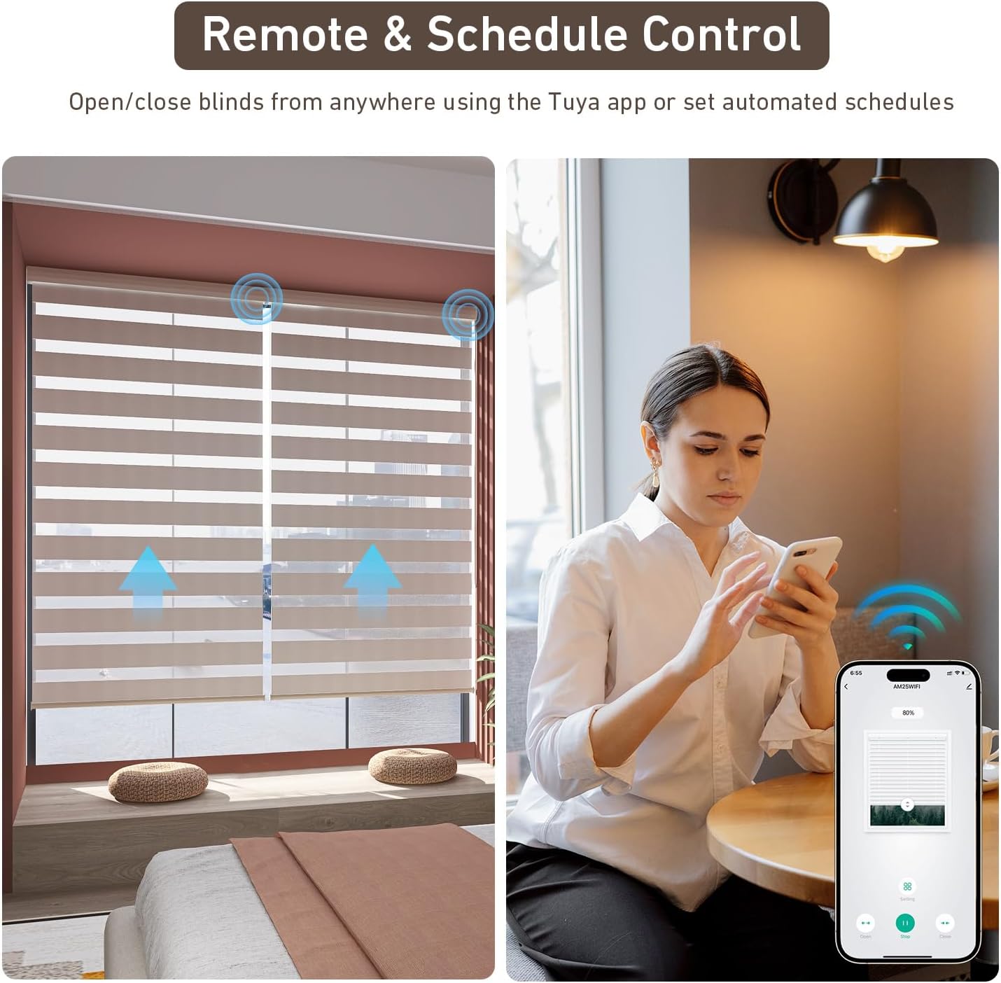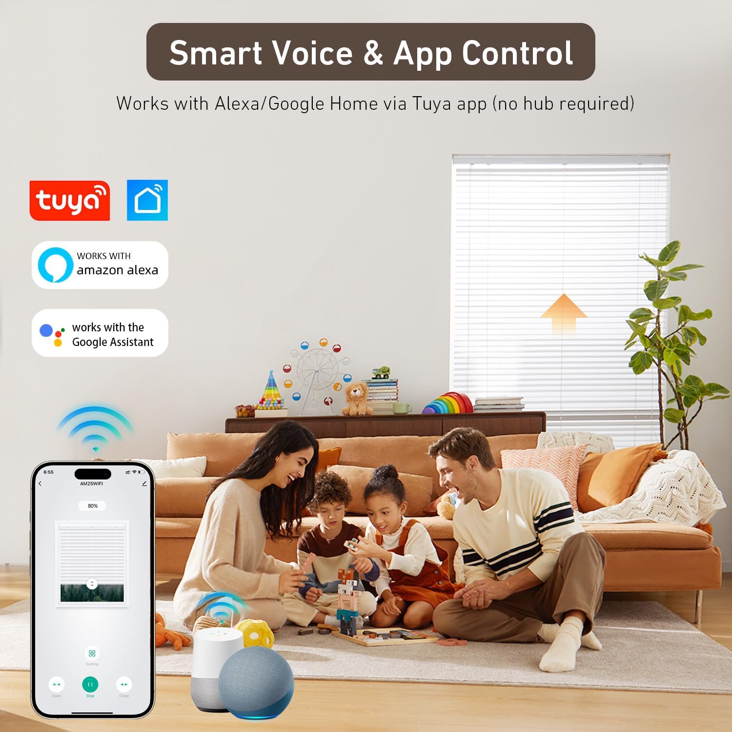 Smart Voice & App Control – Seamlessly control your blinds via the Tuya Smart App, Alexa, or Google Home with simple voice commands or scheduling. No hub required