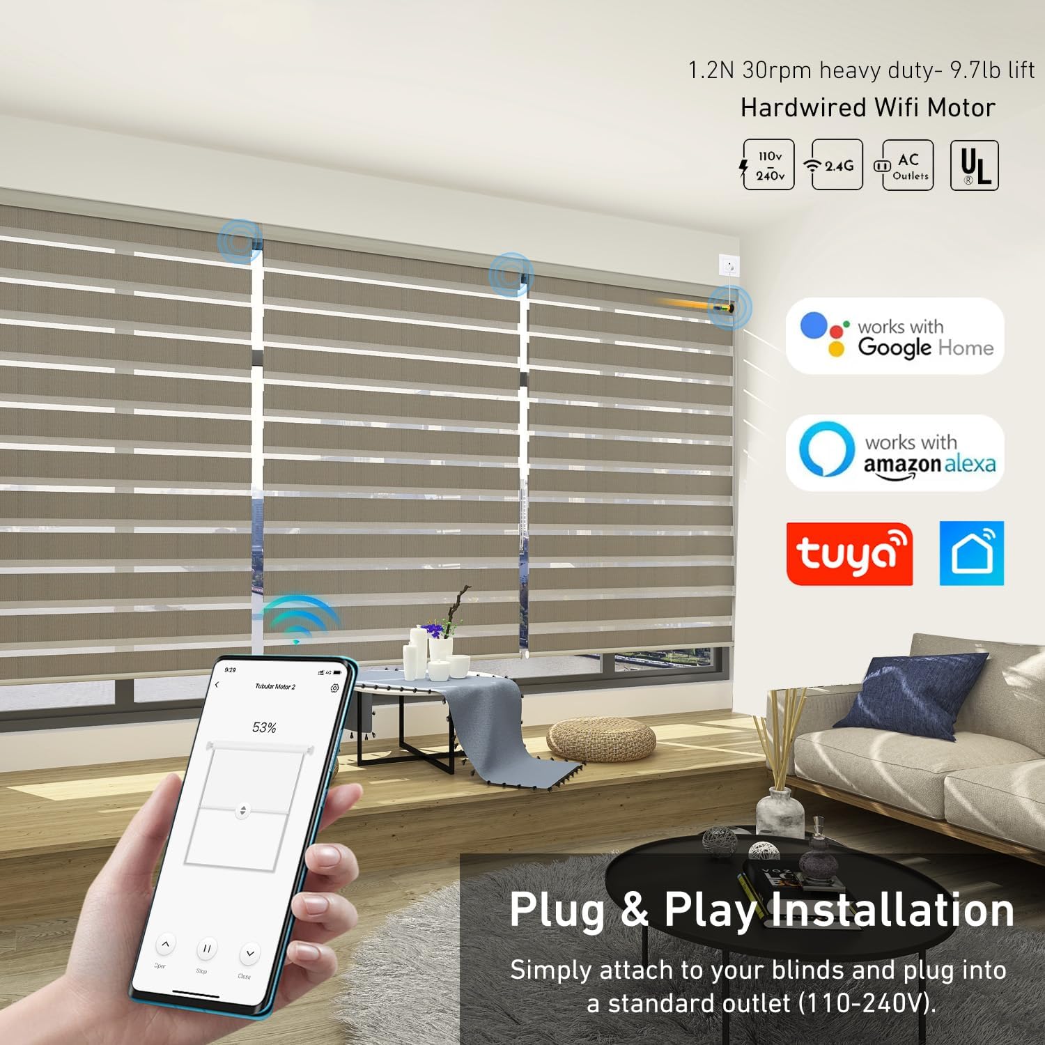 Rollerhouse AM25MEL Smart WiFi Blinds Motor for 1.5''/38mm Tubes - Tuya App Control, Alexa/Google Home, No Hub Needed - Works with Zebra/Roman/Roller Shades - 110-240V AC Plug-in, Ultra Quiet (30dB)