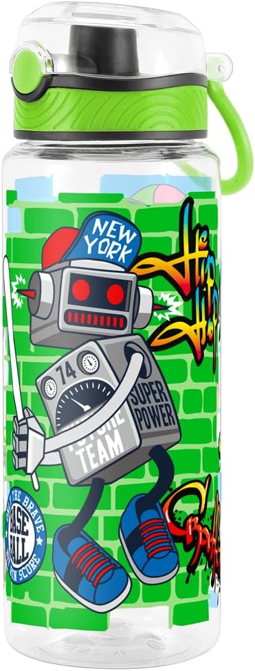 Home Tune Cute Water Bottle for School Kids Girls, BPA FREE Tritan & Leak Proof & Easy Clean & Carry Handle, 23oz/ 680ml - Sports Robot