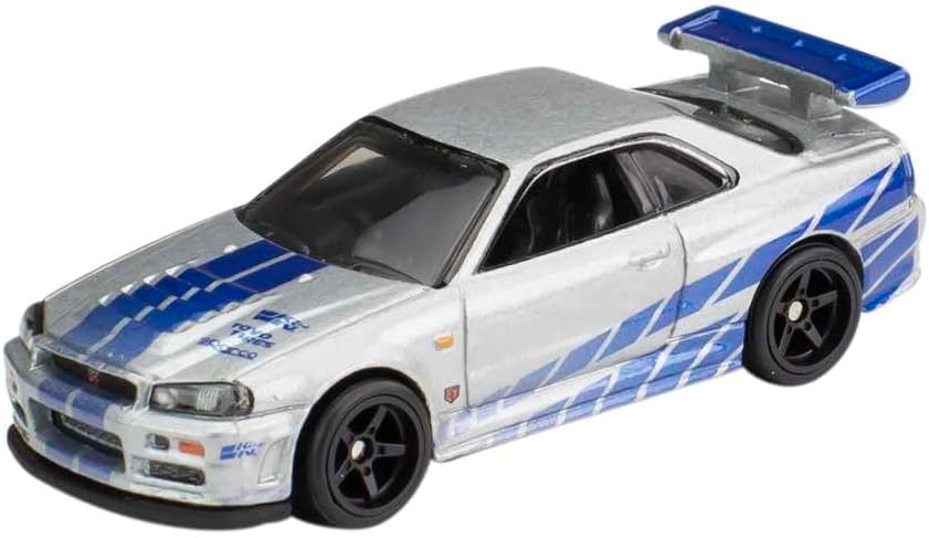 Colección Retro de Entretenimiento HOT WHEELS, Nissan Skyline R34, TV y Videojuegos, Réplicas Íconos para Jugar o Exhibir, Regalo para Coleccionistas