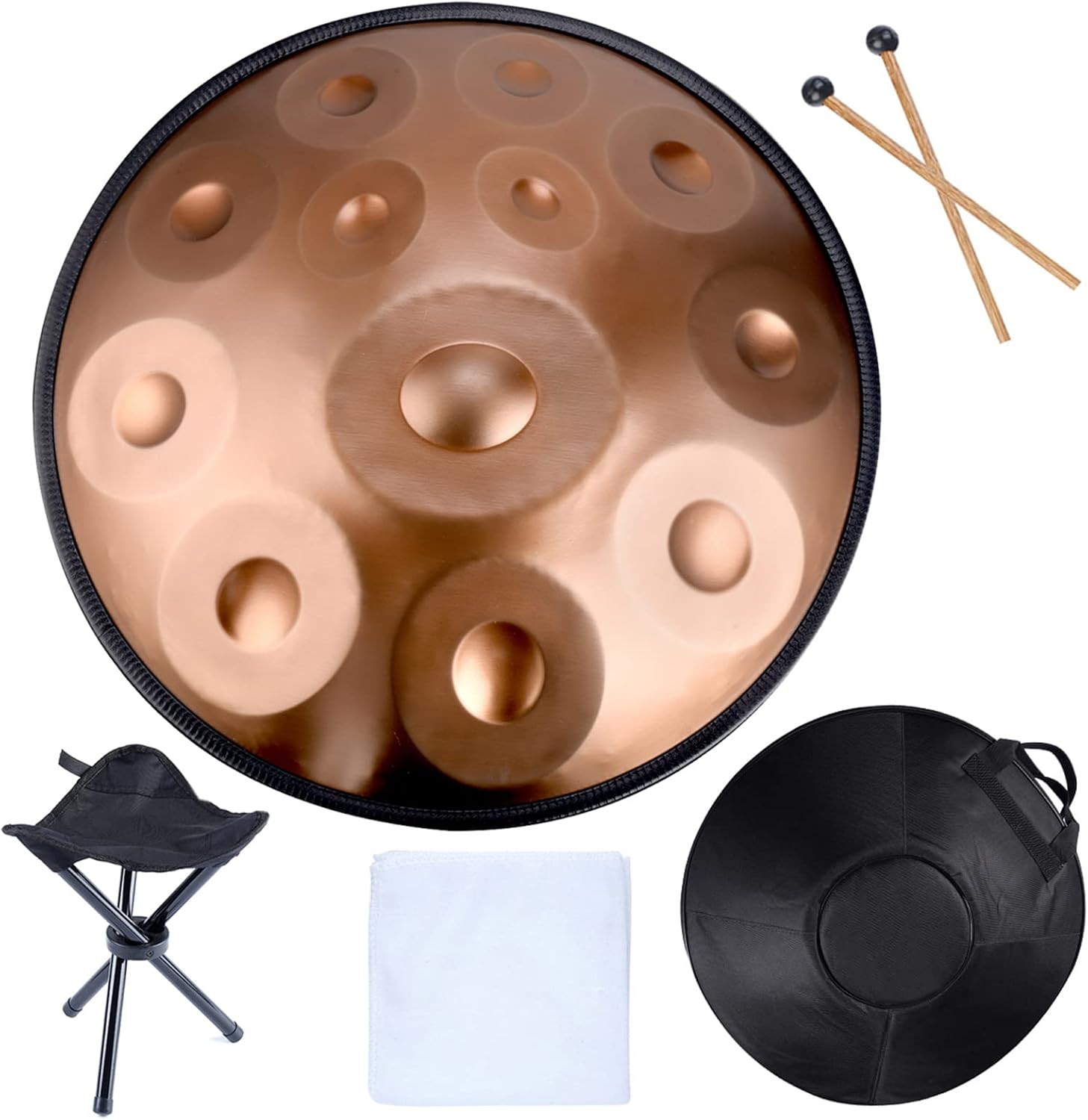 Handpan Drums Sets D Minor 22 inches Steel Hand Drum with Soft Hand Pan Bag, 2 handpan mallet,Handpan Stand (12 Notes, Glod)