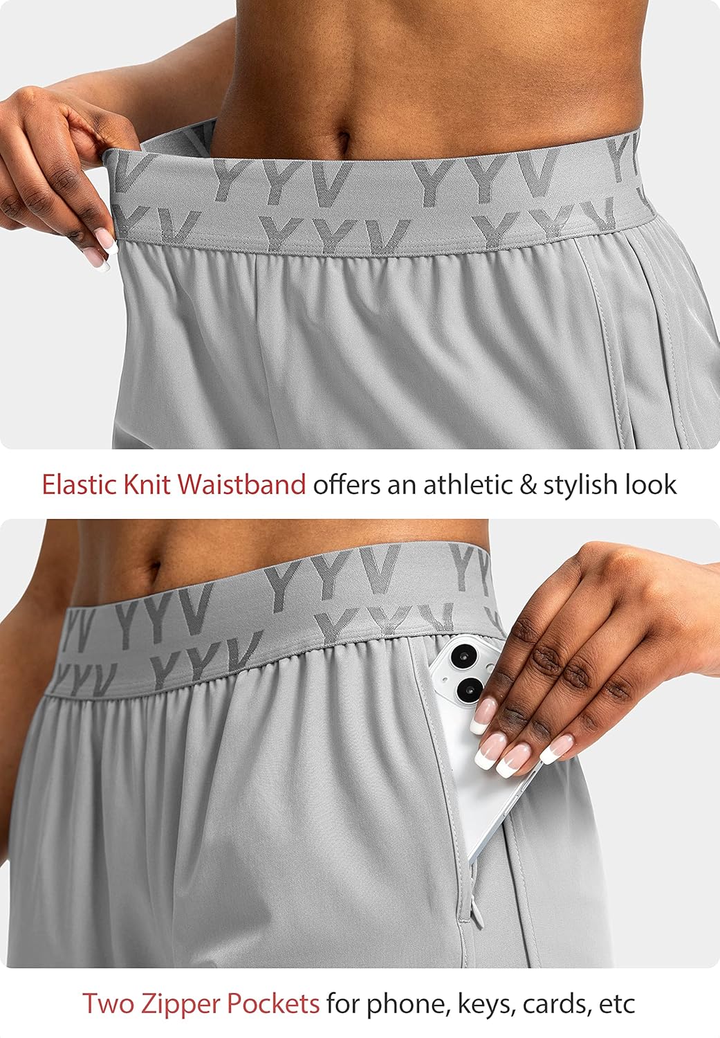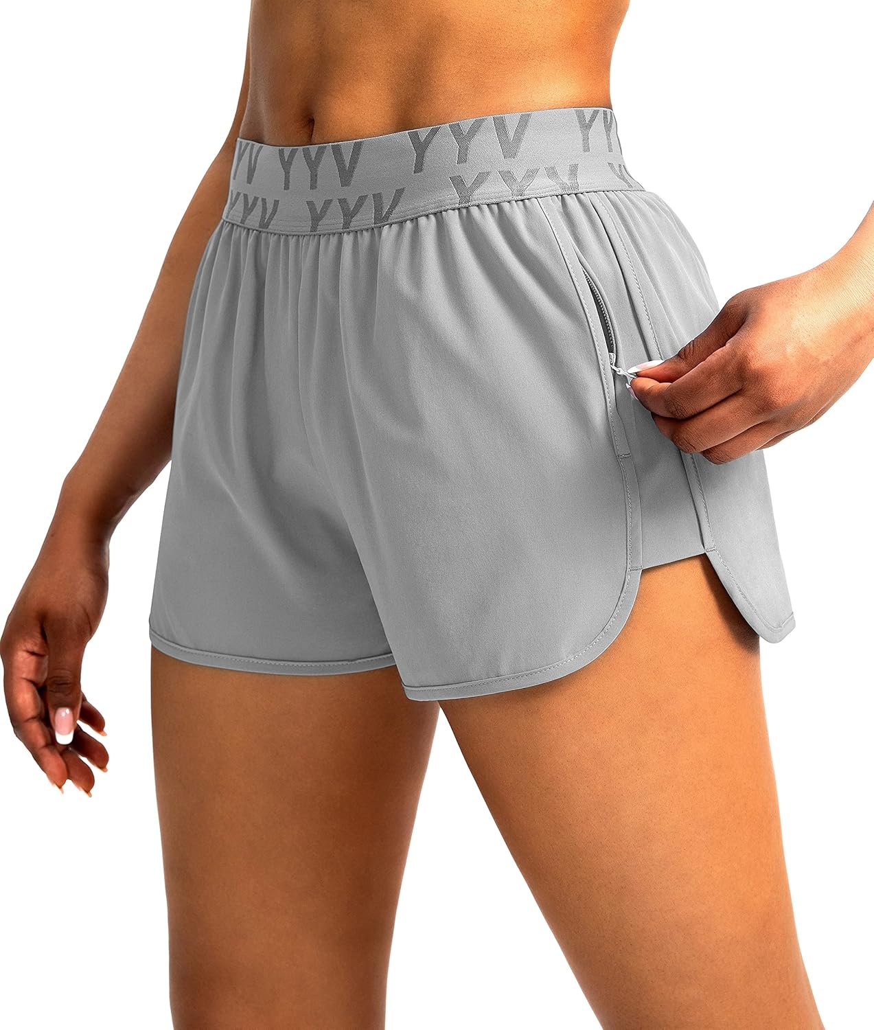 YYV Women's Running Shorts with Zipper Pockets Quick-Dry Elastic Waist Band Athletic Gym Shorts for Women with Liner