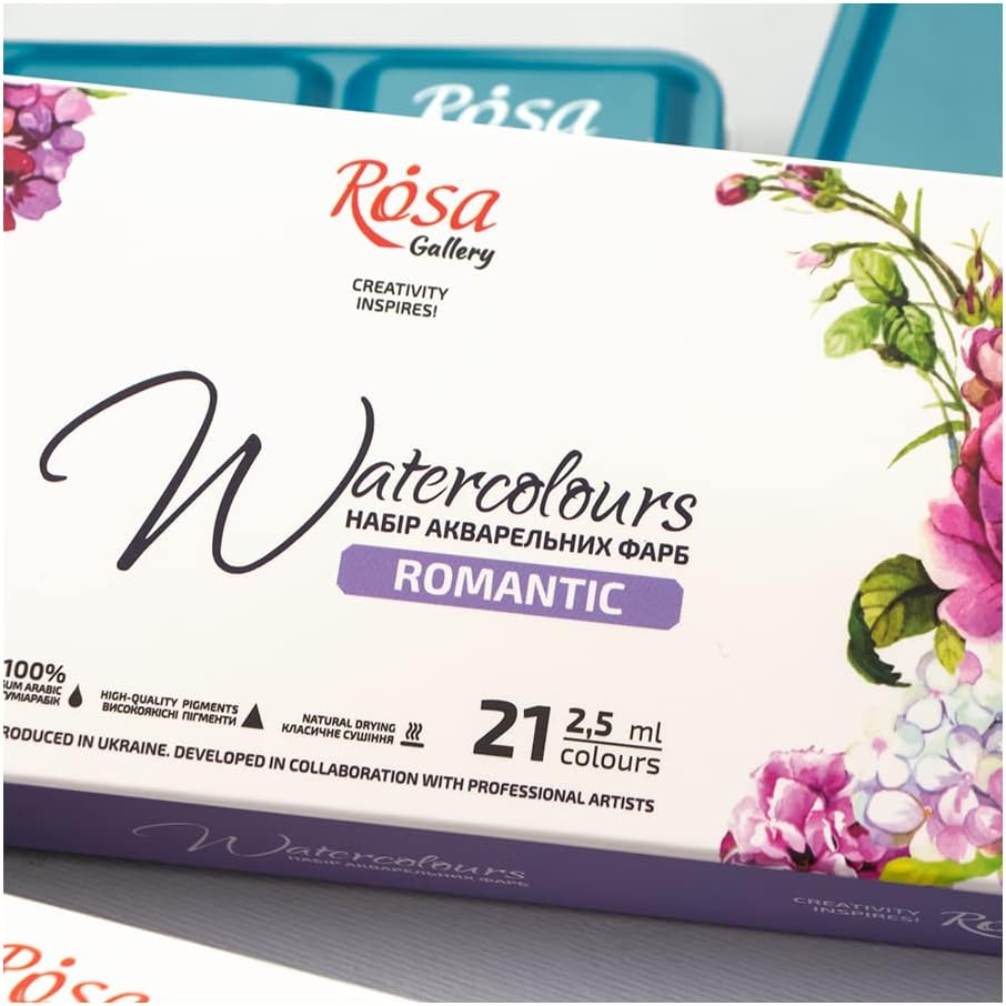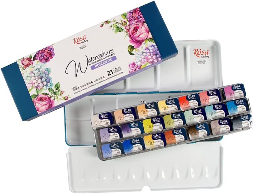 Rosa Gallery Romantic Professional Watercolor Paint Set, 21 Water Colors of 2.5 ml, High Lightfastness Paints Kit for Artists, Adult, Lightweight and Portable Metal Case