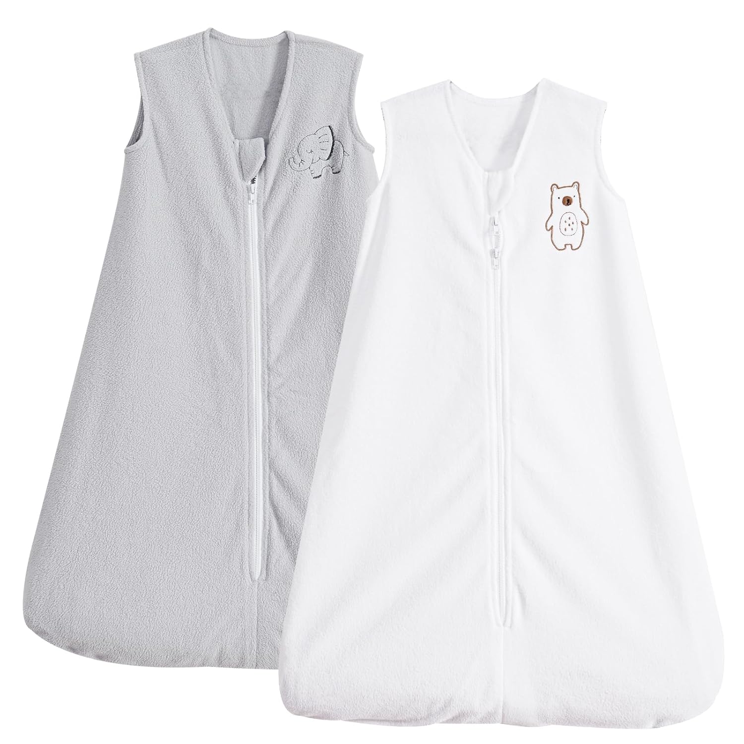 PHF Warm Micro-Fleece Baby Sleep Sack 6-12 Months, Soft Baby Wearable Blanket, 2-Way Zipper Sleeping Bags, 2 Pack Comfy Sleeping Sack for Infant Newborn Boys, Medium Size, White&Grey
