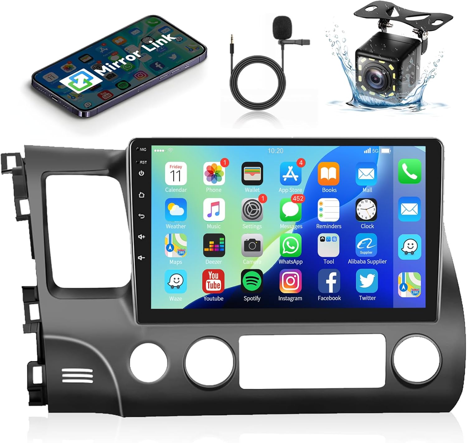 Podofo for Honda Civic 2006 2007 2008 2009 2010 2011 Car Stereo Radio with GPS Navigation 10.1 inch HD IPS Touch Screen Bluetooth Car Radio Support Mirror Link WiFi Backup Camera Mic
