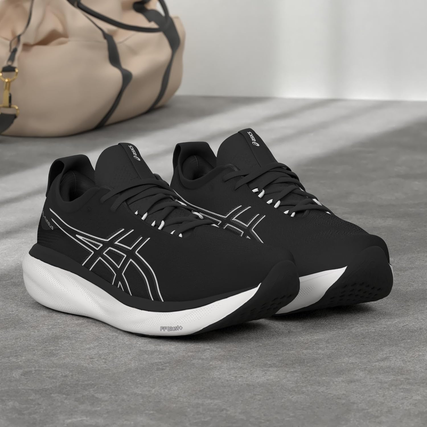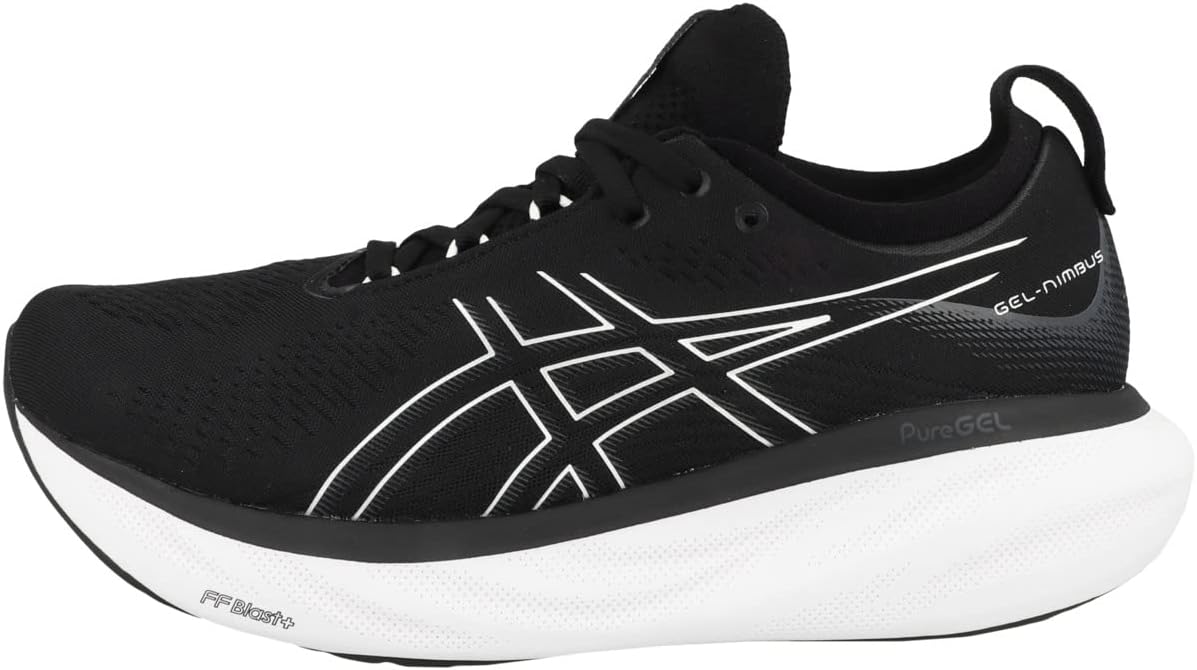 The GEL-NIMBUS 25 shoe's soft cushioning properties help you feel like you're landing on clouds. This neutral trainer is revamped with new materials that create a softer and smoother running experience. A soft knit upper comfortably wraps your foot while supplying advanced ventilation. Its updated knit tongue construction provides better flexibility and extends around the ankle for a more luxurious fit and feel.The midsole is packed with the most cushioning that the series has offered to date. By adding more FF BLAST PLUS ECO cushioning and using our new PureGEL technology, this trainer creates a lighter and softer cushioning experience.