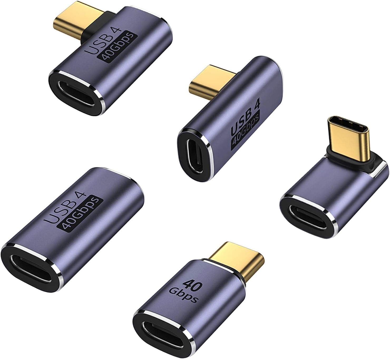 AreMe 5 Pack USB C Adapter, 90 Degree Up&Down, Left&Right Angle USB Type C Male to Female Extender, Female to Female Coupler for Steam Deck, ROG Ally, Switch, MacBook Pro/Air and More (Purple)