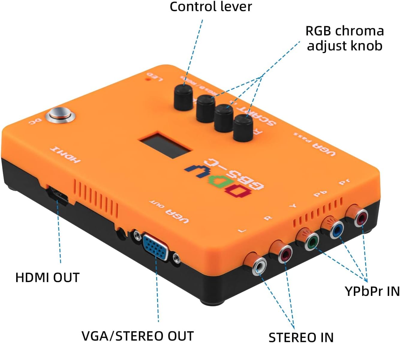 Please note that there are noly three input interface of this product: RGBS SCART , component YPbPr, VGA,RGBHV. This ODV GBS-C Converter is specially designed for classic retro game consoles. It converts YPbPr component and RGB signals to standard HDMI and VGA signals for easy connection to modern TVs and displays. Support low solution output function of reverse direction analog signal. Solve problems of common converter (such as OSSC) got.