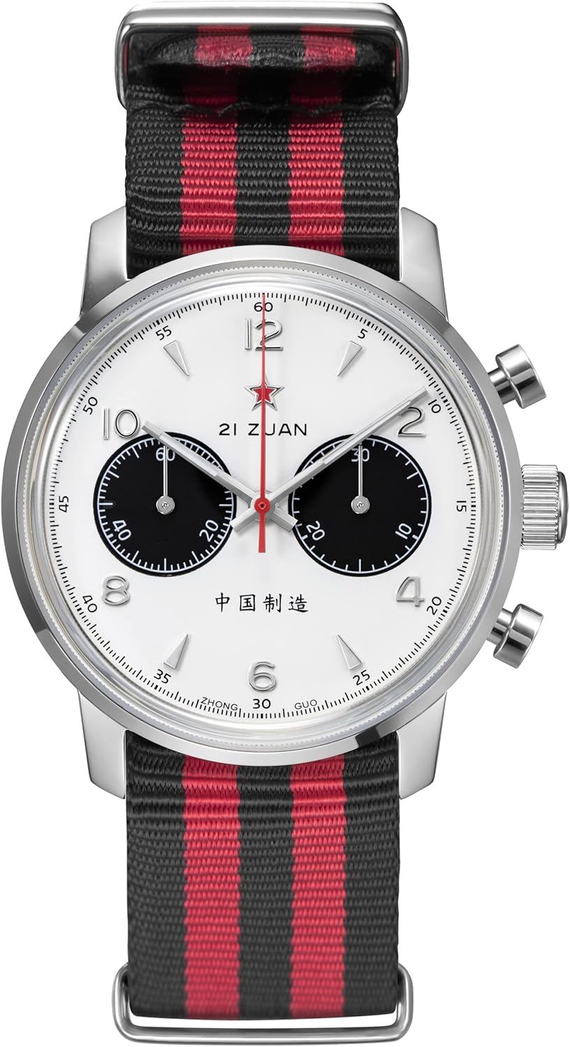 SEAKOSS Classic 42mm ST1901 Movement Pilot Chronograph Mechanical Wristwatch for Male: Watch Brand: SEAKOSS Crystal: Scratch-resistant synthetic sapphire crystal glass Case: Polished Stainless Steel 316L, 42mm diameter x 14mm thick Back: Exhibition transparent clear window back Strap material: Nylon, Buckle: Pin buckle, Water Resistant: 3ATM (30 meters) Movement: Equipped with original 1963 ST1901 Hand Winding Movement. Box package includes: 1*Pilot Chronograph Watch + 1*Clean watch cloth + 1*Manual. This watch has a manual winding mechanical column-wheel chronograph caliber ST19, 21 jewels, 21,600 vibrations per hour, and shock protection. The sub-dial on the left is the running seconds counter and the sub-dial on the right is a 30-minute timer. The red second hand is activated when you click the pusher at 2:00. A unique, historic and classic timepiece. The analog wristwatch is vintage, luxury style, can match up with different kinds of outfits, casual, fashion or business. This wrist watch is an ideal gift for men, for Christmas festival, family, graduation, birthday and meetings, boyfriend or other male classmates and colleagues.