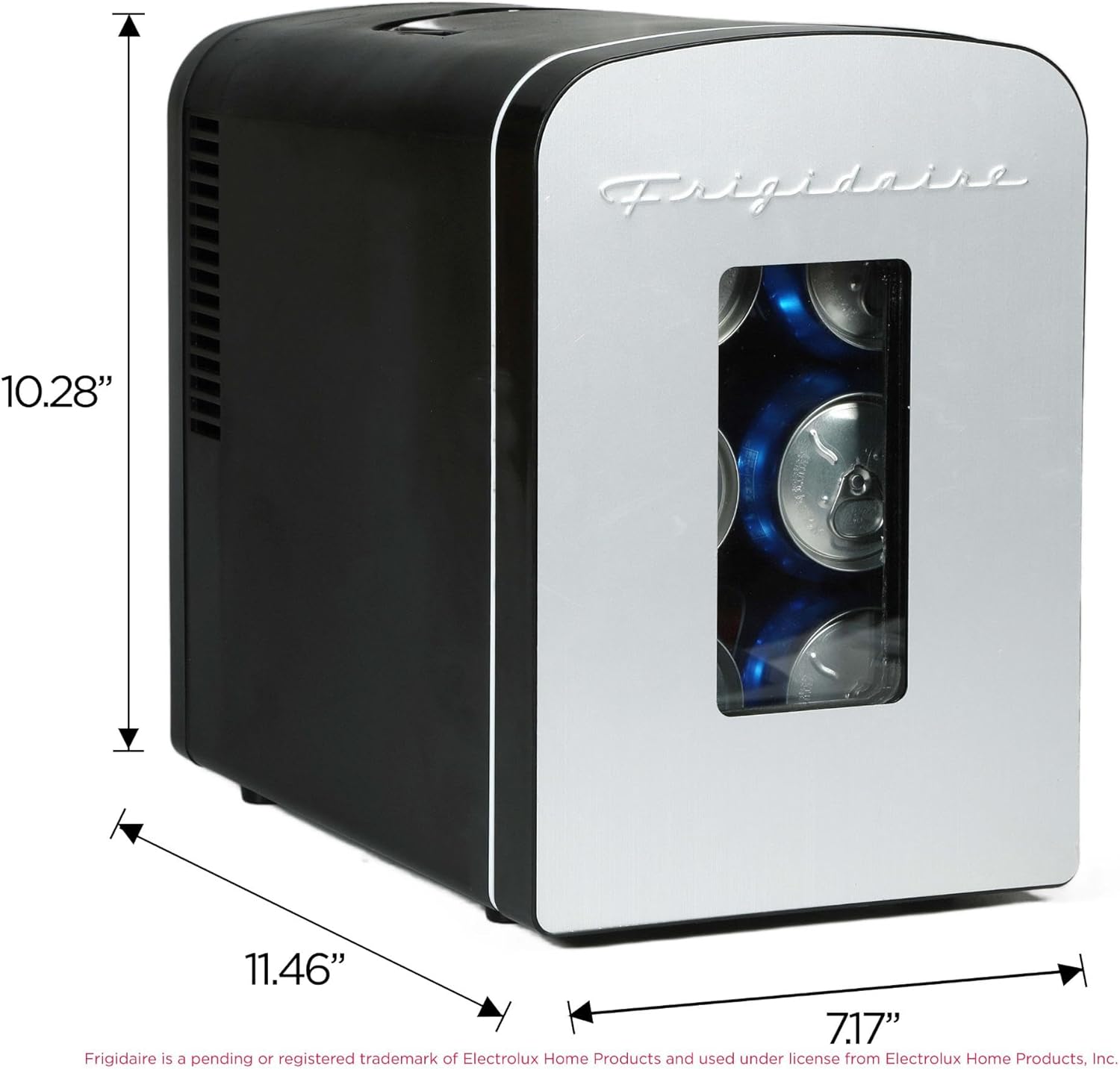 Minirefrigerador portátil Frigidaire de 9 latas, 5 litros, acero inoxidable cepillado resistente, ventana, EFMIS189-SS, puerta transparente, vidrio