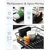 Kitsure Rack de Secado para Platos en la Cocina, Organizador y Almacenamiento Esencial de Acero Inoxidable con Soporte para Cuchillos, Decoración para Hogar y Apartamento, 12''W x 15.5''L, Negro