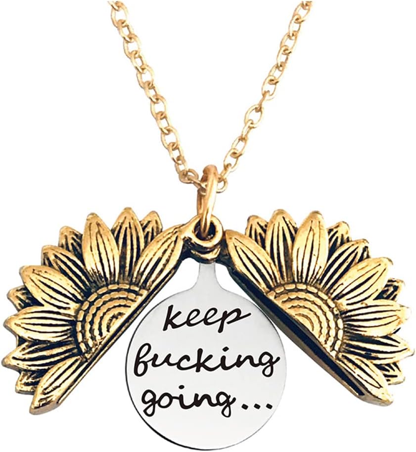 ZAHSY Keep Fucking Going Inspirational Gifts for Men Daughter Son Women Sunflower Locket Necklace for Women Girls