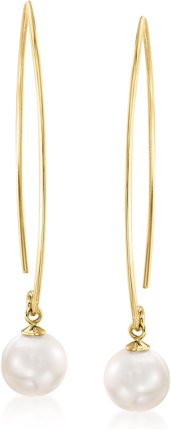 Ross-Simons 8-8.5mm Cultured Pearl Threader Drop Earrings