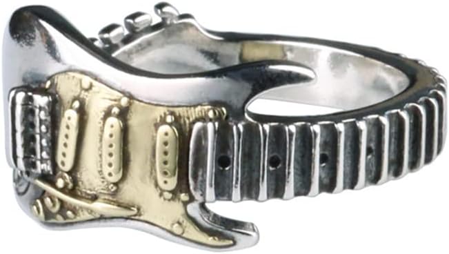 Rock Music Guitar Open Band Ring for Men Women Punk Gothic Statement Adjustable Extendable Knuckle Middle Finger Bands Fashion Hip Hop Biker Jewelry for Dad Comfort Fit