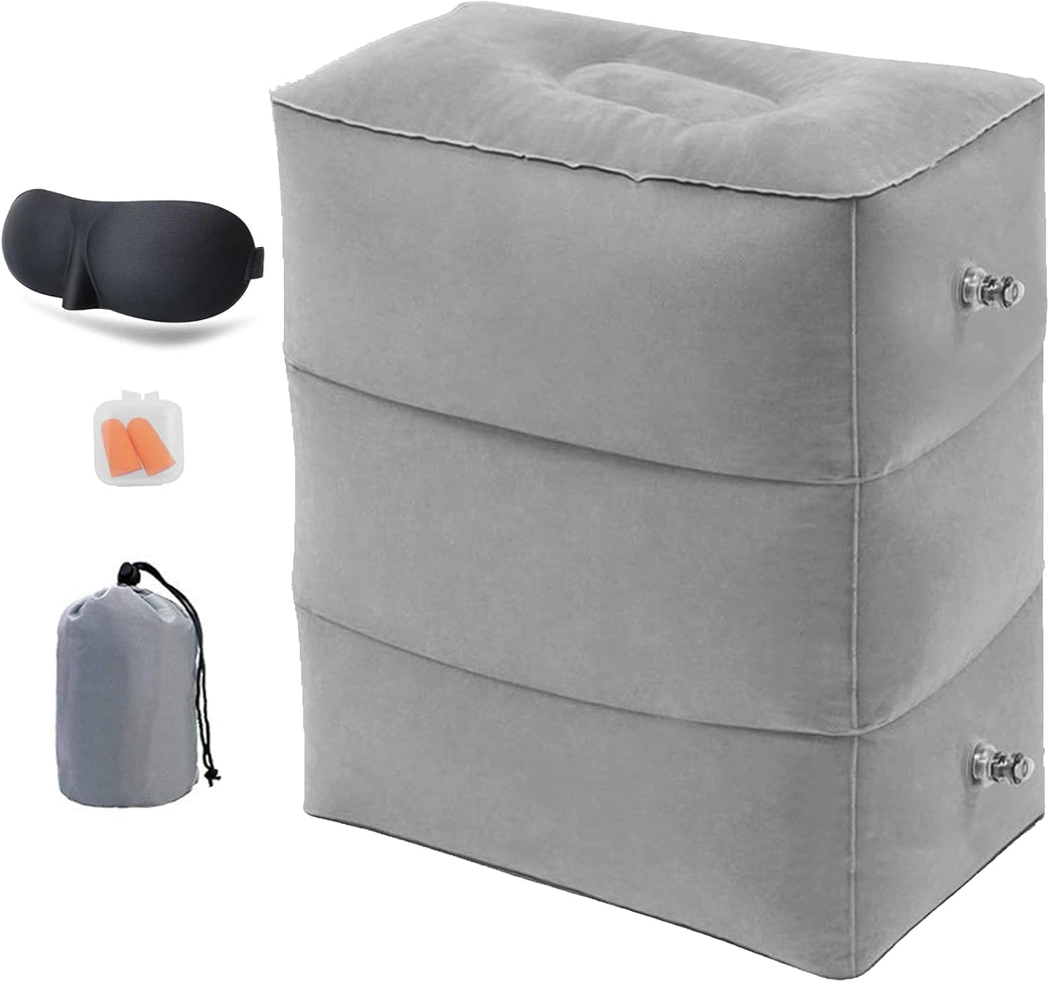Almohada de reposapiés inflable, reposapiés ajustable de altura Kimiandy para avión, cojín de reposapiés para viajes/coches/oficina/hotel (gris)