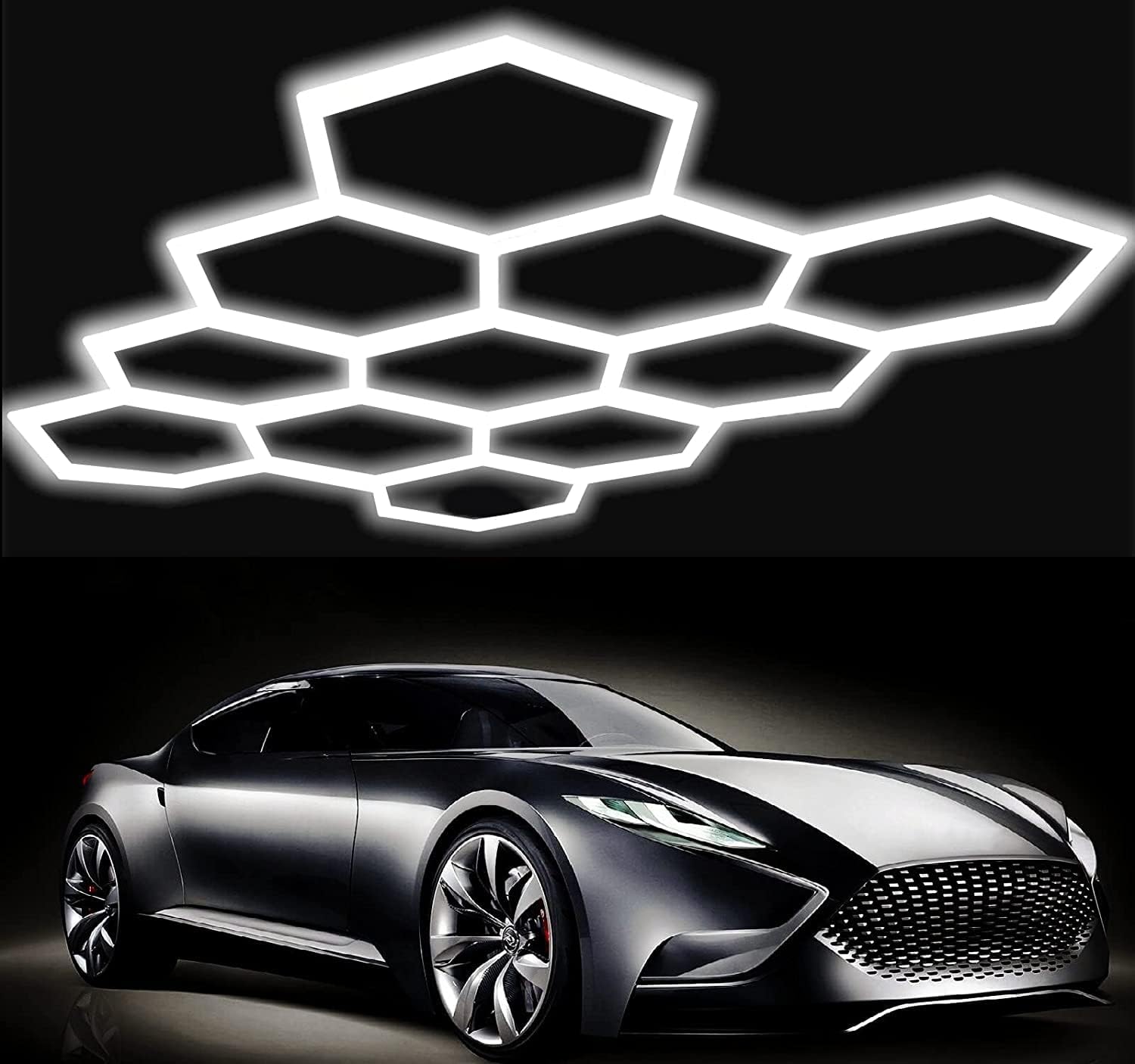 DIY Plug in Hexagon LED Garage Light for Workshop Gym Detail Shop, Size Customizable Hexagonal Honeycomb Grid System (11 Hexagonal Grid System)