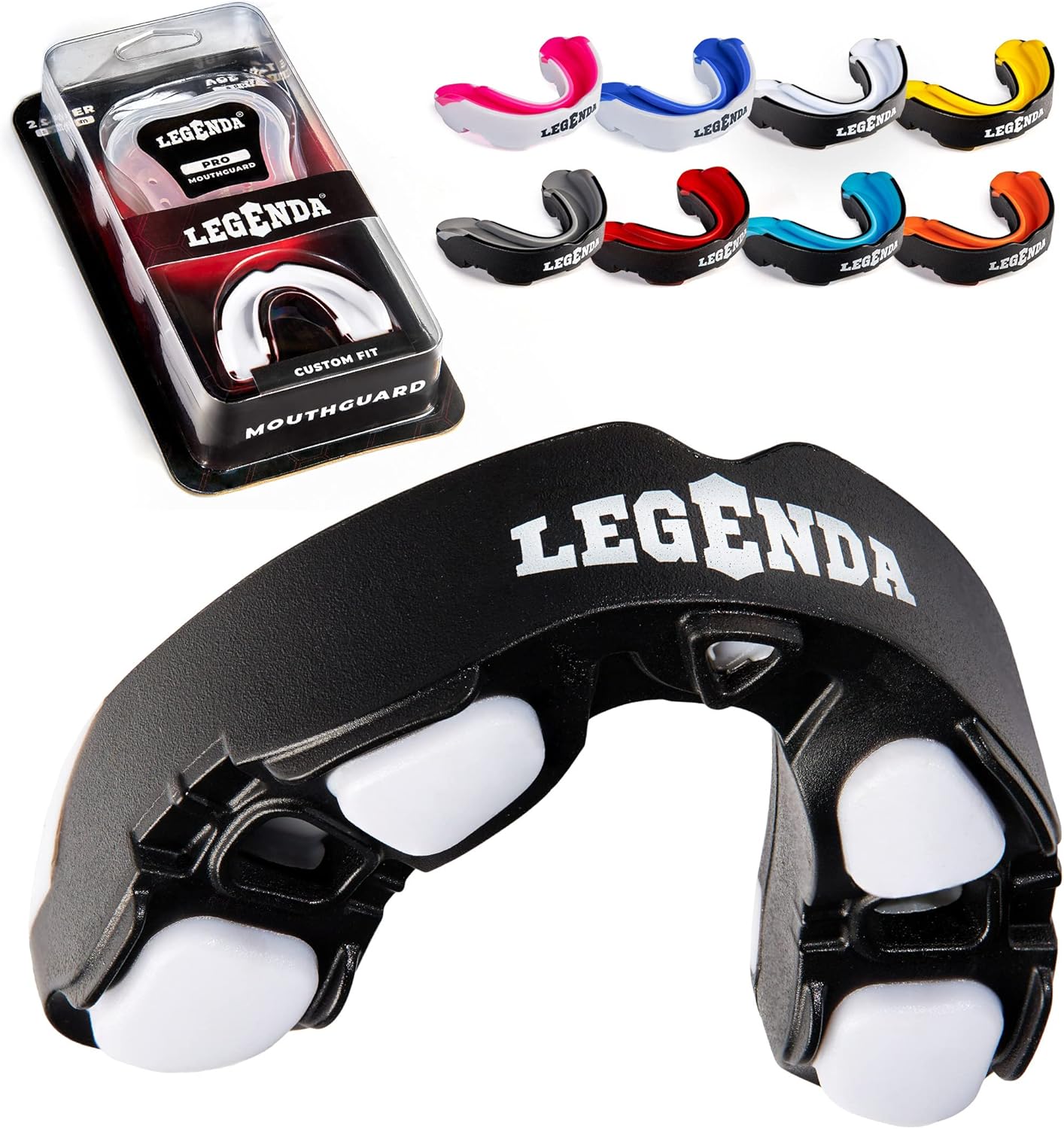 Legenda Mouth Guard Sports w/Case, Professional Mouthguard for Boxing, Football, Hockey, Jiu Jitsu, Muay Thai, MMA, Wrestling and High Contact Sports, Fits Adults, Youth, Kids 11+ (Black/White)