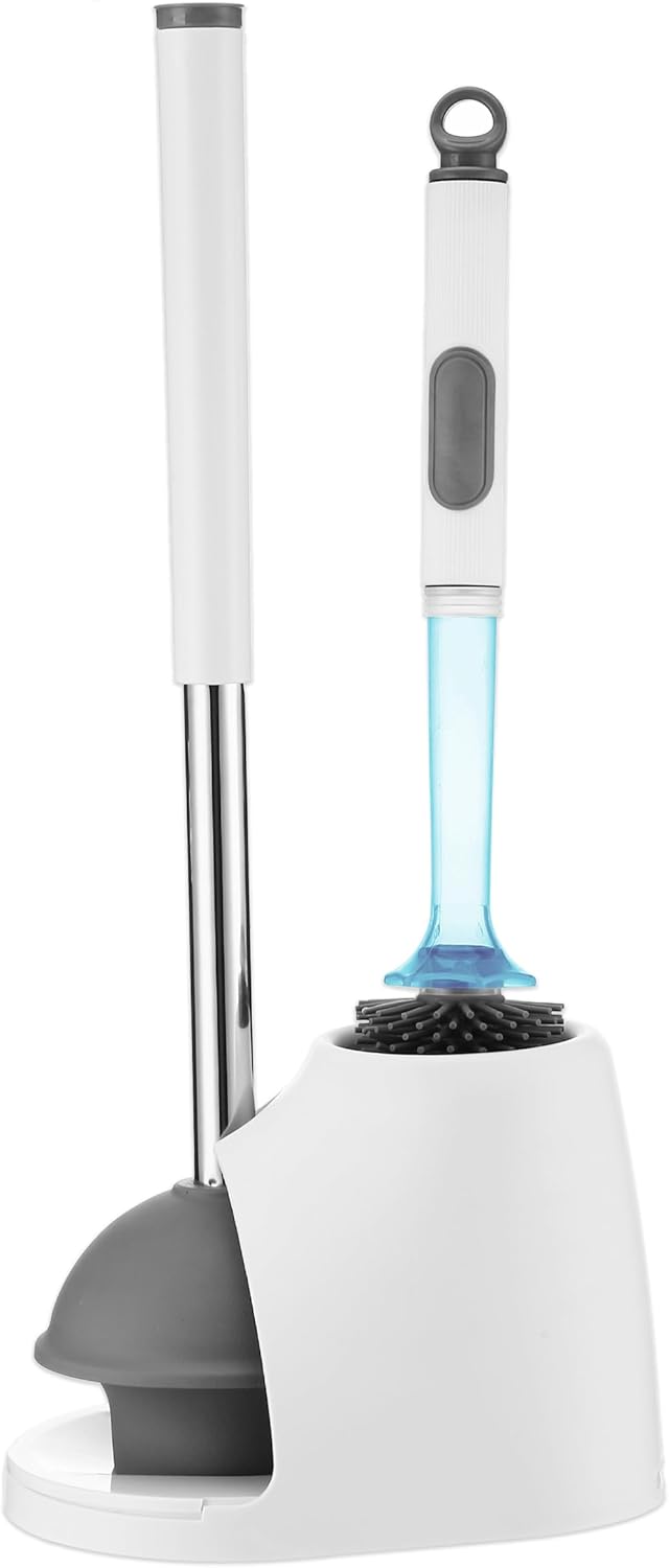 Juego de escobilla y émbolo ToiletBuddies, escobilla y soporte para inodoro, cepillo dispensador de líquido recargable, juego de escobilla y émbolo de silicona 2 en 1 para baño