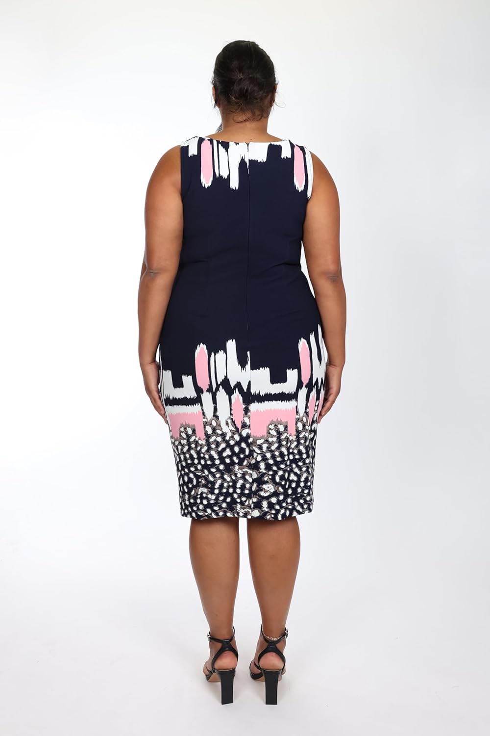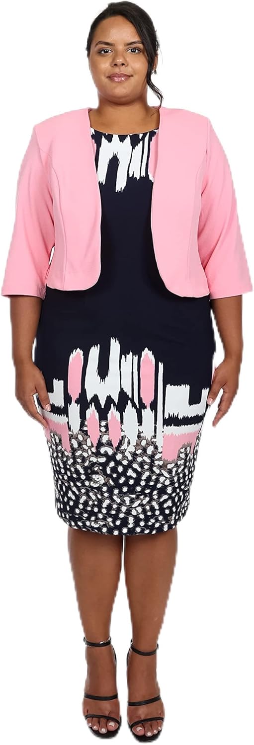 Maya Brooke Women's Plus Size Border Print Knee Length Sheath Dress and 3/4 Sleeve Jacket 2-Piece Set