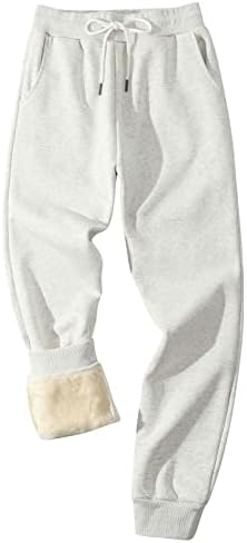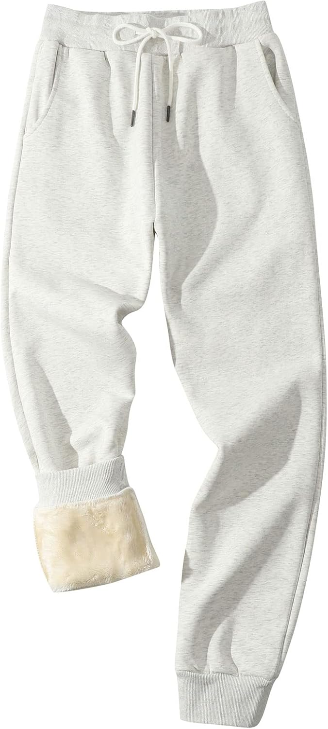 Gihuo Men's Winter Fleece Pants Sherpa Lined Sweatpants Athletic Running Sweatpants Ribbed Leg Comfy Warm Jogger Pants(White-XS)
