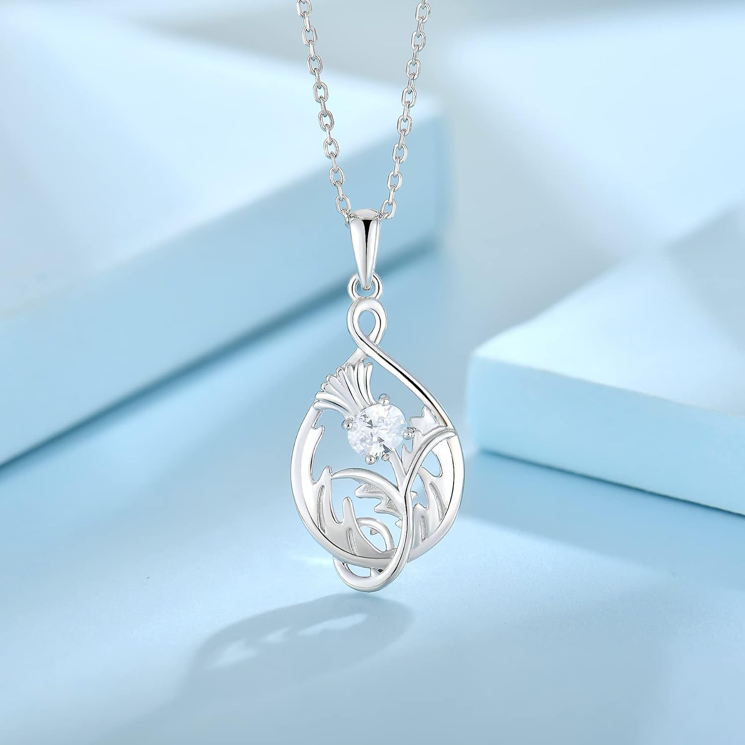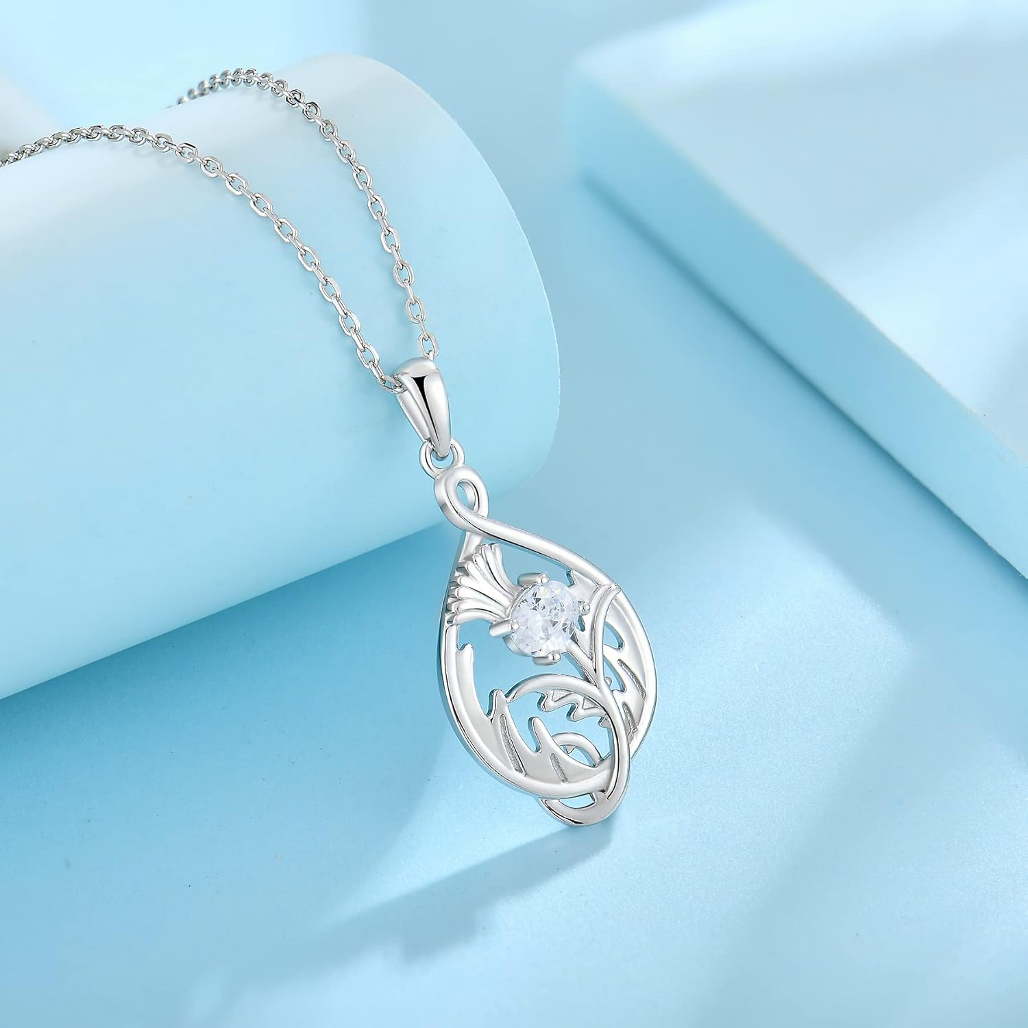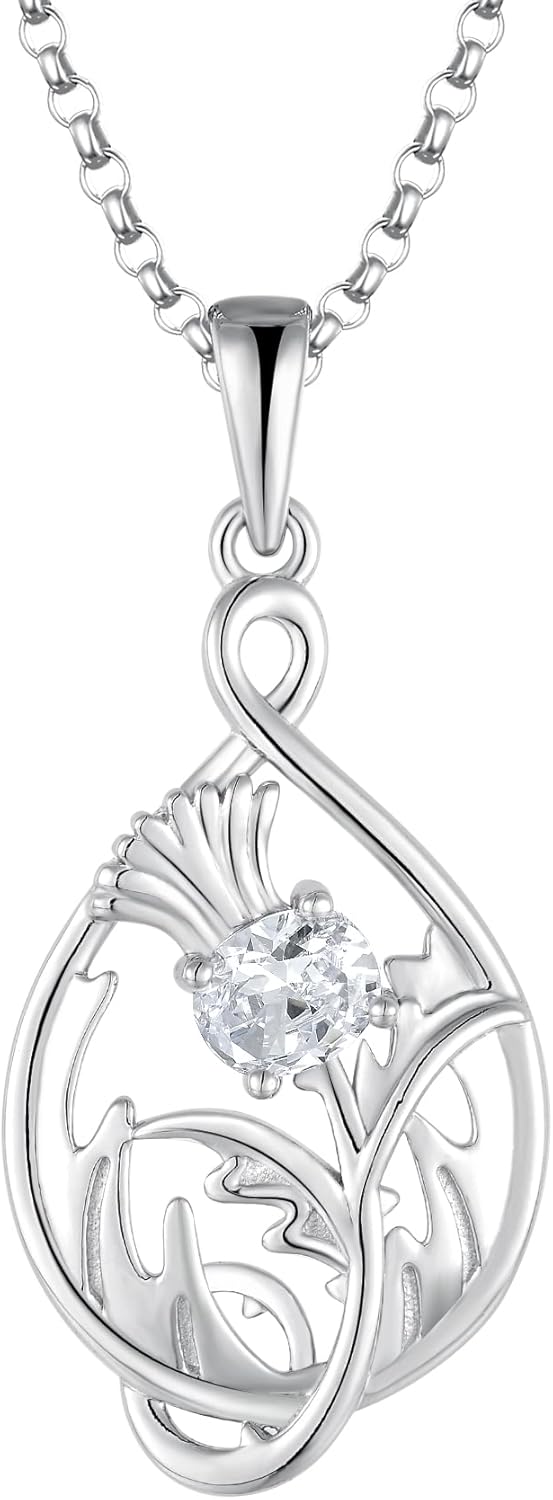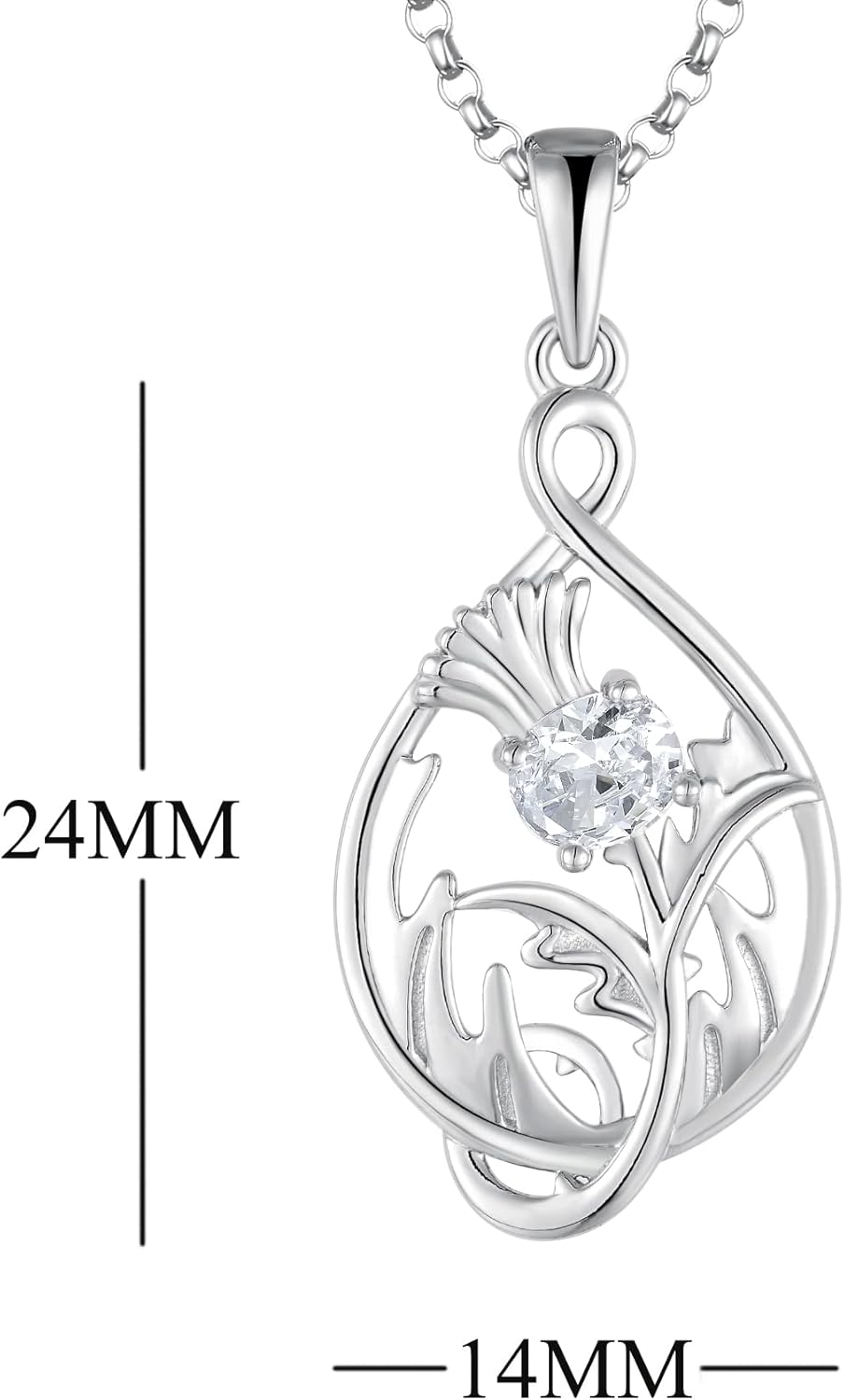 JO WISDOM Scottish Thistle Necklace,925 Sterling Silver Celtic Scotland Flower Outlander Pendant Necklace with Oval 4 * 5mm 3A Cubic Zirconia,Jewelry for Women