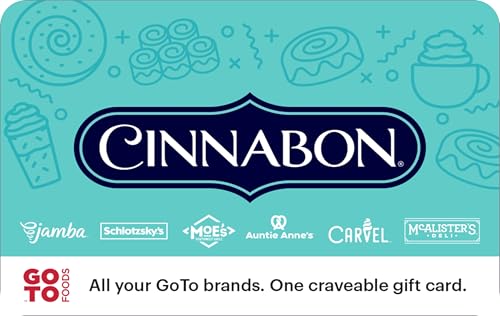 Cinnabon is the market leader among cinnamon roll bakeries. Our bakeries serve fresh, aromatic, oven-hot cinnamon rolls, as well as a variety of other baked goods and specialty beverages. This Cinnabon -Mix It Up gift card is also redeemable at participating Auntie Anne’s, Carvel, Jamba, McAlister’s Deli, Moe’s Southwest Grill and Schlotzsky’s locations.  Mix It Up for More Favorites, Flavors & Fun!
