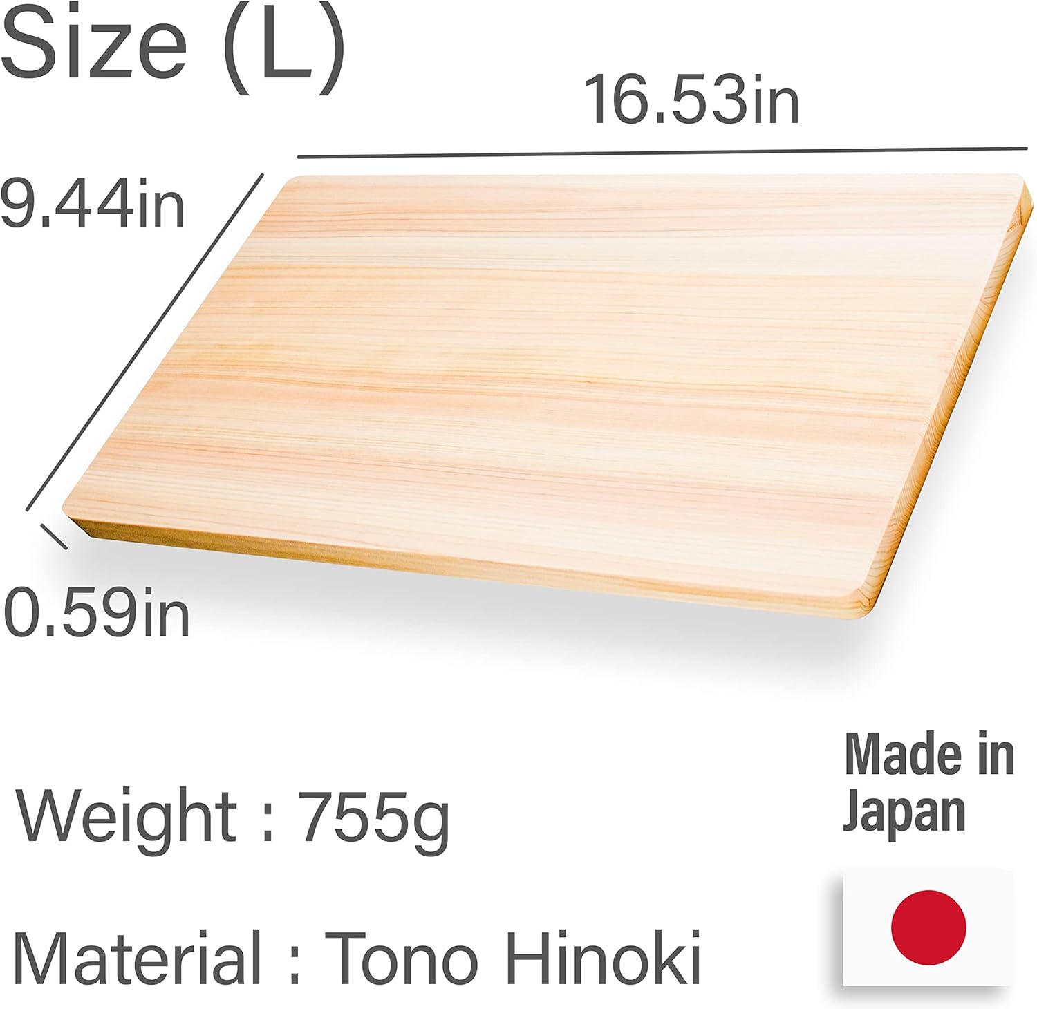 YAMASAN KYOTO UJI Japanese Hinoki Cutting Board - Large - Natural Cypress Wood Cutting Board, Kitchen Chopping Board, High Durability, Made in Japan (16.53×9.44×0.59 inch) (Large)