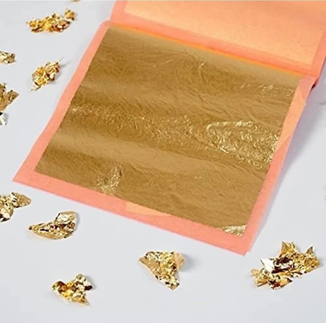 Pure Gold Leaf/Gold Vark/Gold waraq (2.pcs) Sheet 24K Gold Leaf Leaves Foil for Edible FinestSweets,