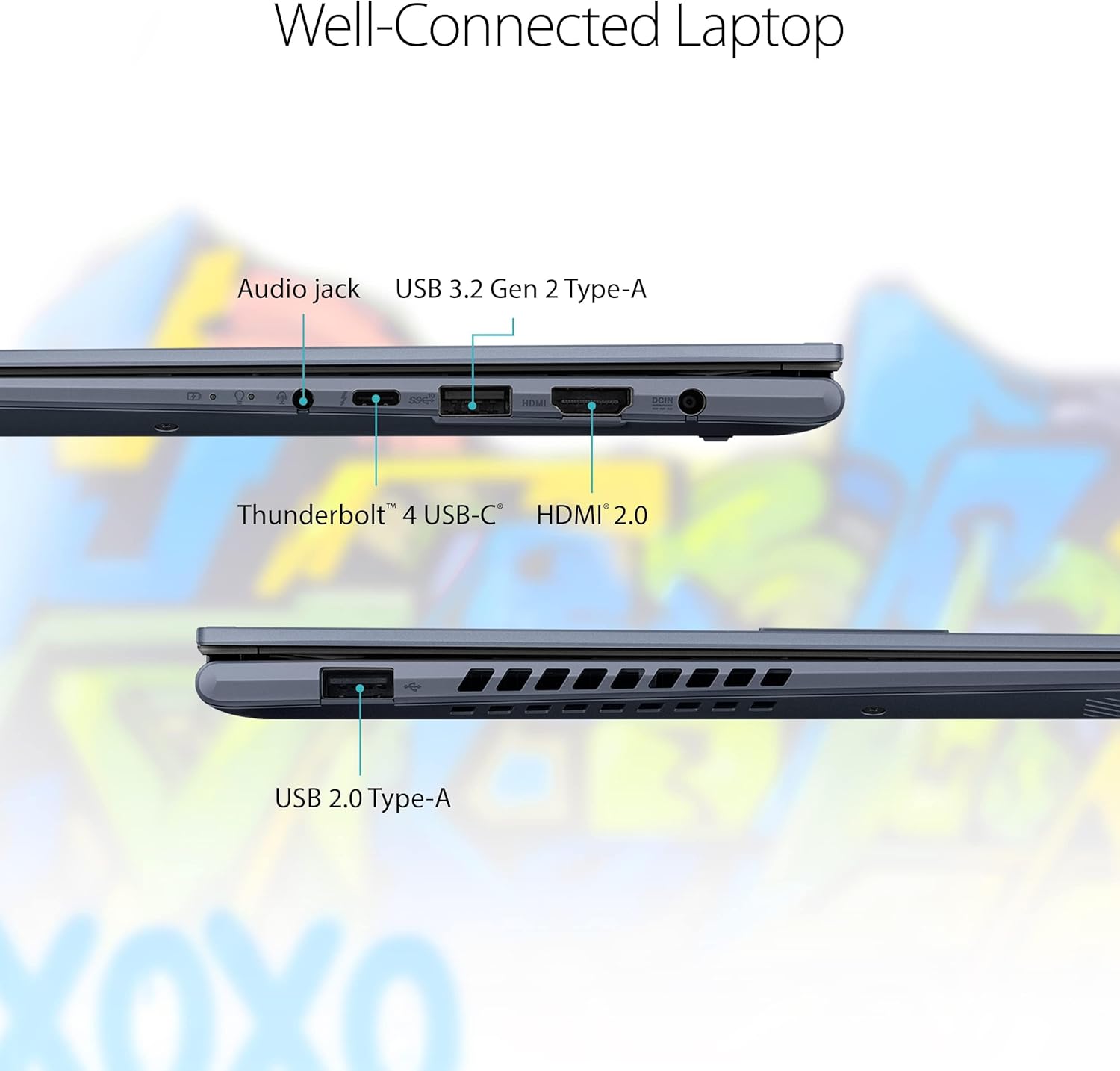 Prepárate para grandes aventuras con el Vivobook S 14 Flip, el convertible súper versátil con bisagra de 360° que te da la libertad para trabajar o jugar. Disfruta del rendimiento fluido de los últimos procesadores Intel Core y almacenamiento SSD rápido, también da un placer a tus ojos con su increíble pantalla táctil NanoEdge FHD de 14 pulgadas. Es la elección perfecta para superar tus tareas diarias o relajarte con estilo, y con muchos puertos incluyendo el último Thunderbolt 4, es fácil conectarse a cualquier cosa, en cualquier lugar. Un acabado Quiet Blue moderno hace del Vivobook S 14 Flip una parte elegante de tu mundo hoy. *La velocidad de transferencia real de USB 3.2 (Gen 1 y 2), y/o Thunderbolt variará dependiendo de muchos factores incluyendo la velocidad de procesamiento del dispositivo host, atributos del archivo y otros factores relacionados con la configuración del sistema y tu entorno operativo.
