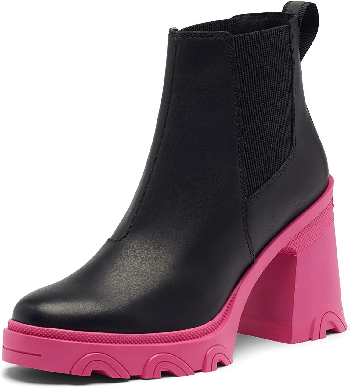 The SOREL Women's Brex Heel Chelsea Boot is a bold and stylish addition to any wardrobe. These Boots are a combination of a Chelsea Boot and a rainBoot, featuring waterproof full-grain leather. The leather uppers with gore panels support ease of entry. The seam-sealed waterproof construction and synthetic lining ensure your feet stay dry, while the molded EVA footbed with a synthetic top cover provides cushioning and exceptional traction. The molded rubber outsole with a diamond texture give the Boots a durable foundation, ensuring that they can handle any weather condition. The flared 4" heel and 1/2" platform add height and style, while the reflective webbing in the heel pull tab adds a touch of visibility and flair. This rain Chelsea Boot is a perfect blend of fashion and function, providing a comfortable and secure fit that will make you stand out from the crowd.Founded in 1962, SOREL combines expert craftsmanship and of-the-moment design to create all-season footwear. What began decades ago with premium Boots, crafted with an unparalleled balance of construction and protection, is now a brand dedicated to both functionality and fashion. Here at SOREL, we believe you are your most powerful tool and the determination you find within is an unstoppable force. SOREL challenges the status quo by creating unexpected footwear that pushes the boundaries of function-first fashion. We stay in motion so you can push yourself forward.